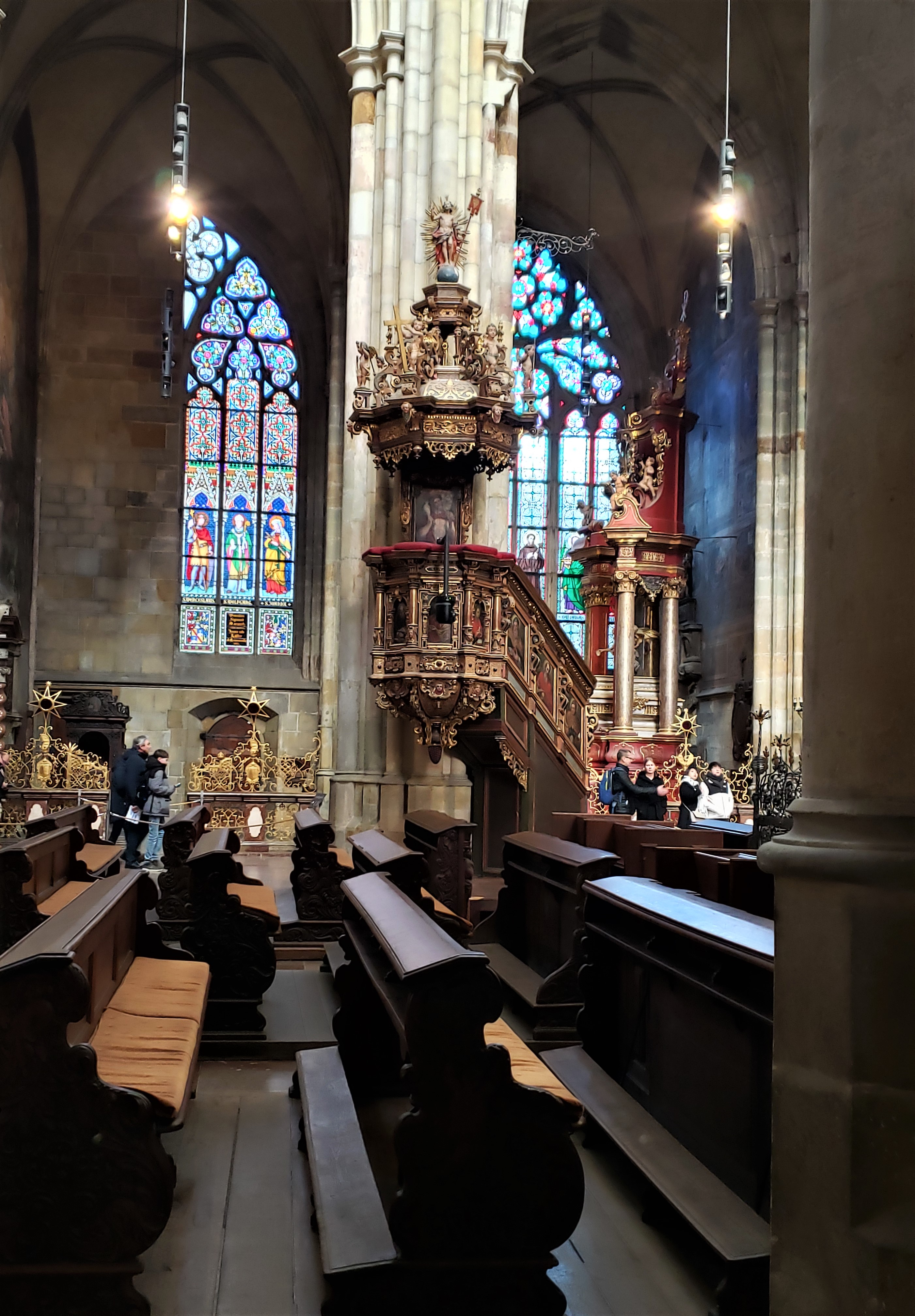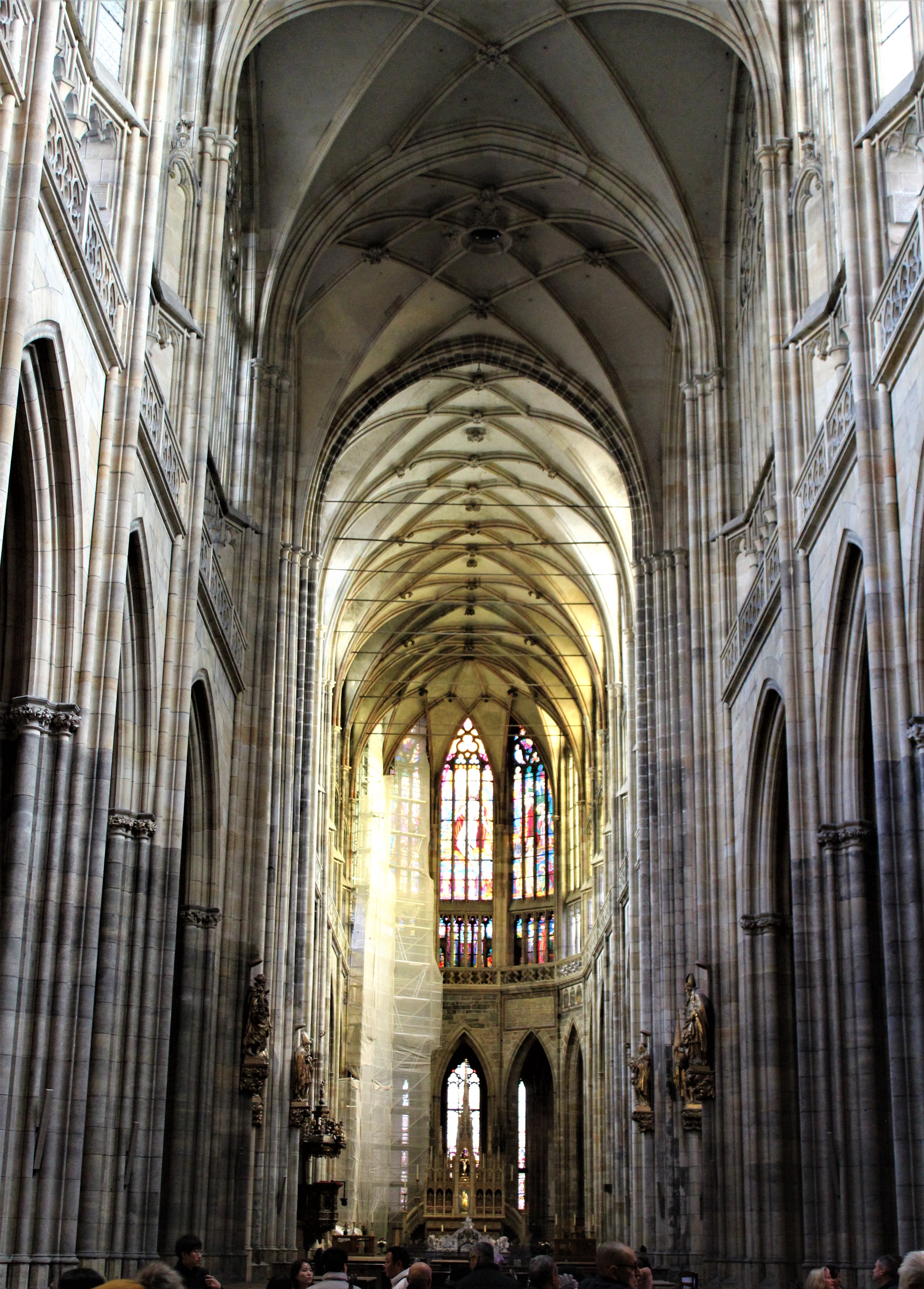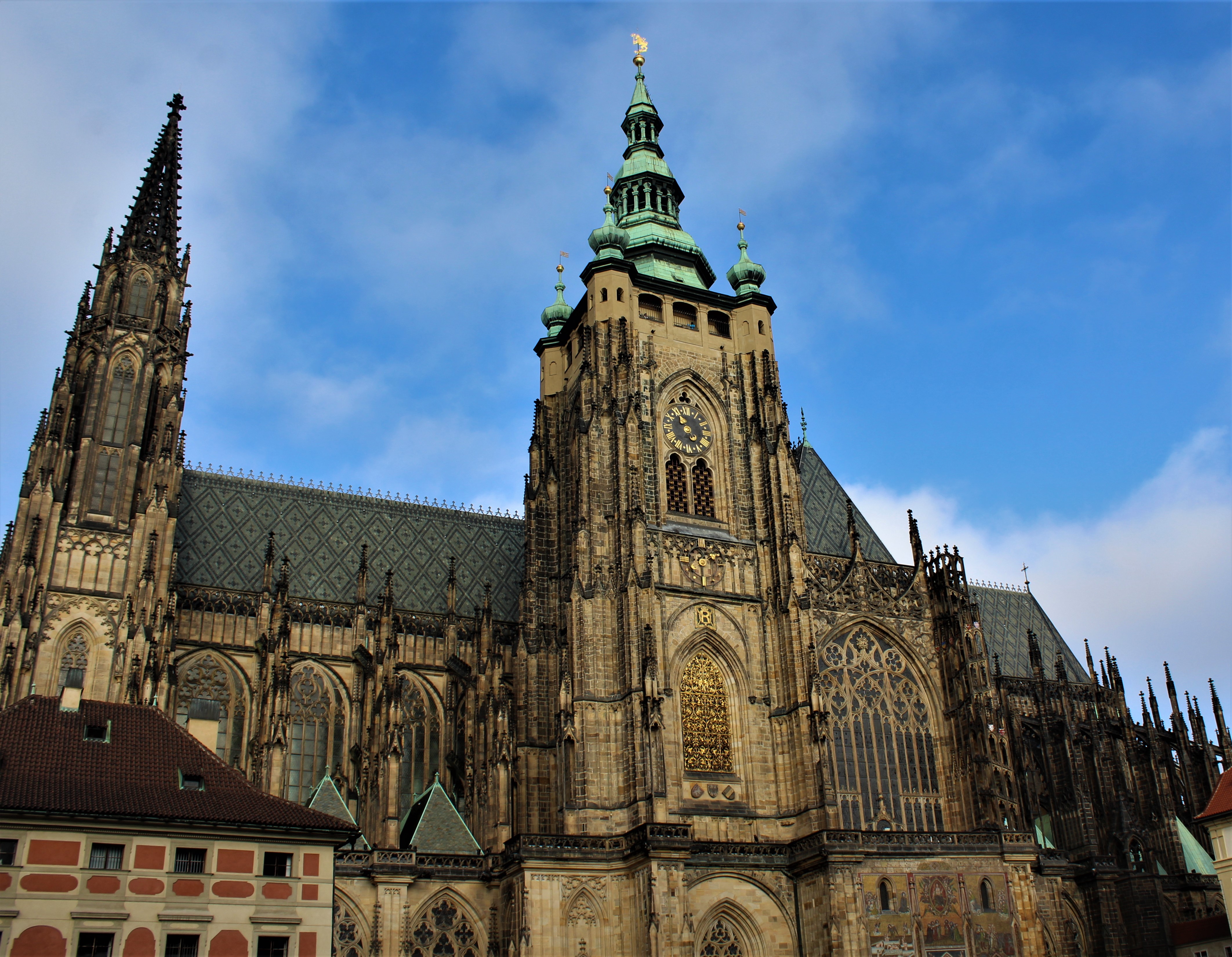 First up, Katedrala sv. Vita (St. Vitus Cathedral).This is the biggest and one of the most significant cathedrals in Czechia. Started in 935AD with the building of a Romanesque Rotunda, the cathedral has seen many updates. In 1344, major sections of the basilica were completed. The lighter colored front of the cathedral was not finished until early 20th century.