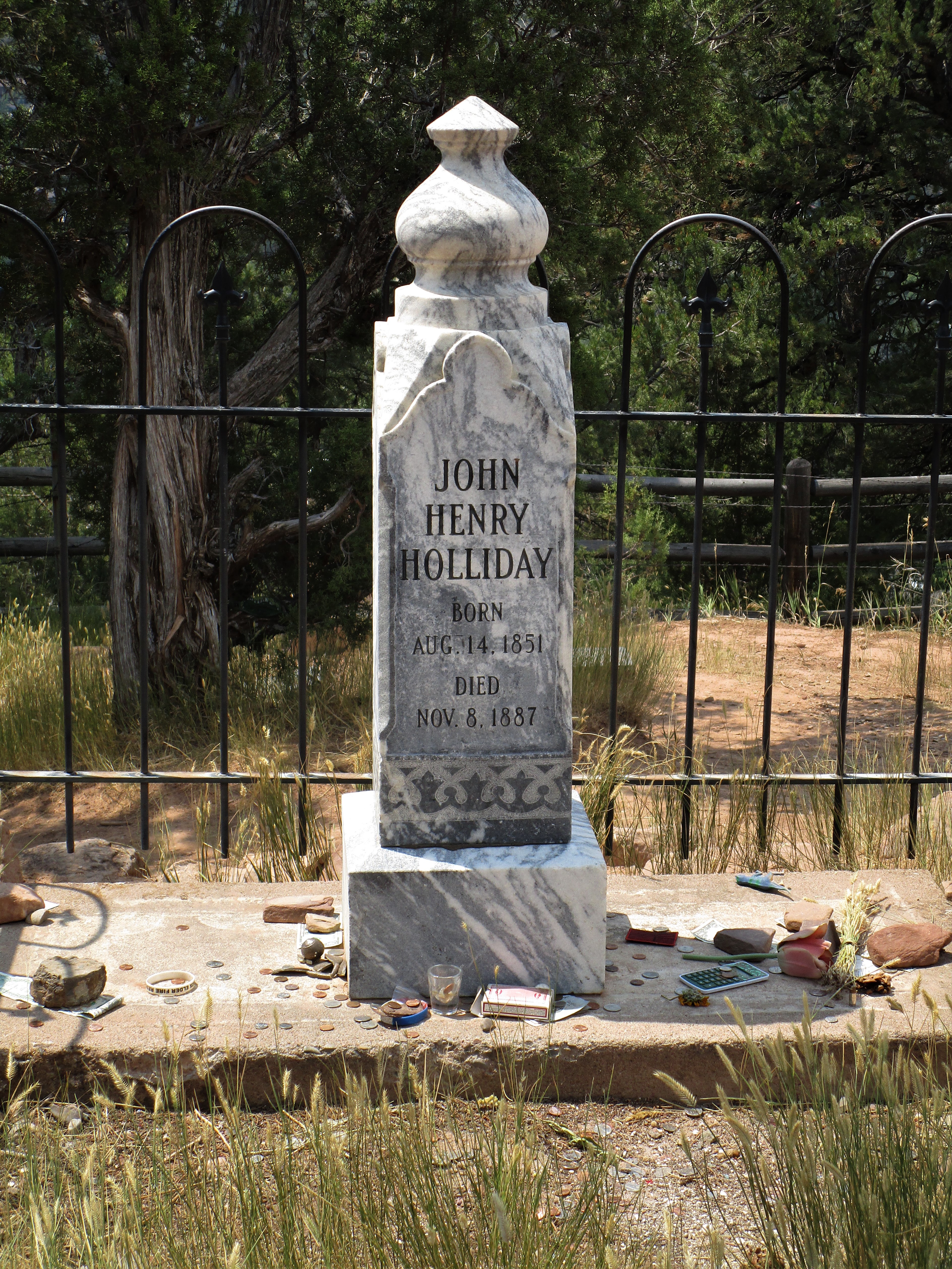 And the surprises just keep on comin! On our way back to Fairplay, we stopped in Glenwood Springs to visit the old cemetery. Why? Well, for one reason to see “Doc” Holliday’s grave! Born August 14, 1851, John Henry Holliday grew up in Georgia and later attended dental school in Pennsylvania. After graduating, “Doc” supplemented his income as a dentist by gambling. Soon, he became more of a gambler than dentist which also necessitated the need to become good with a six-shooter, which he did.