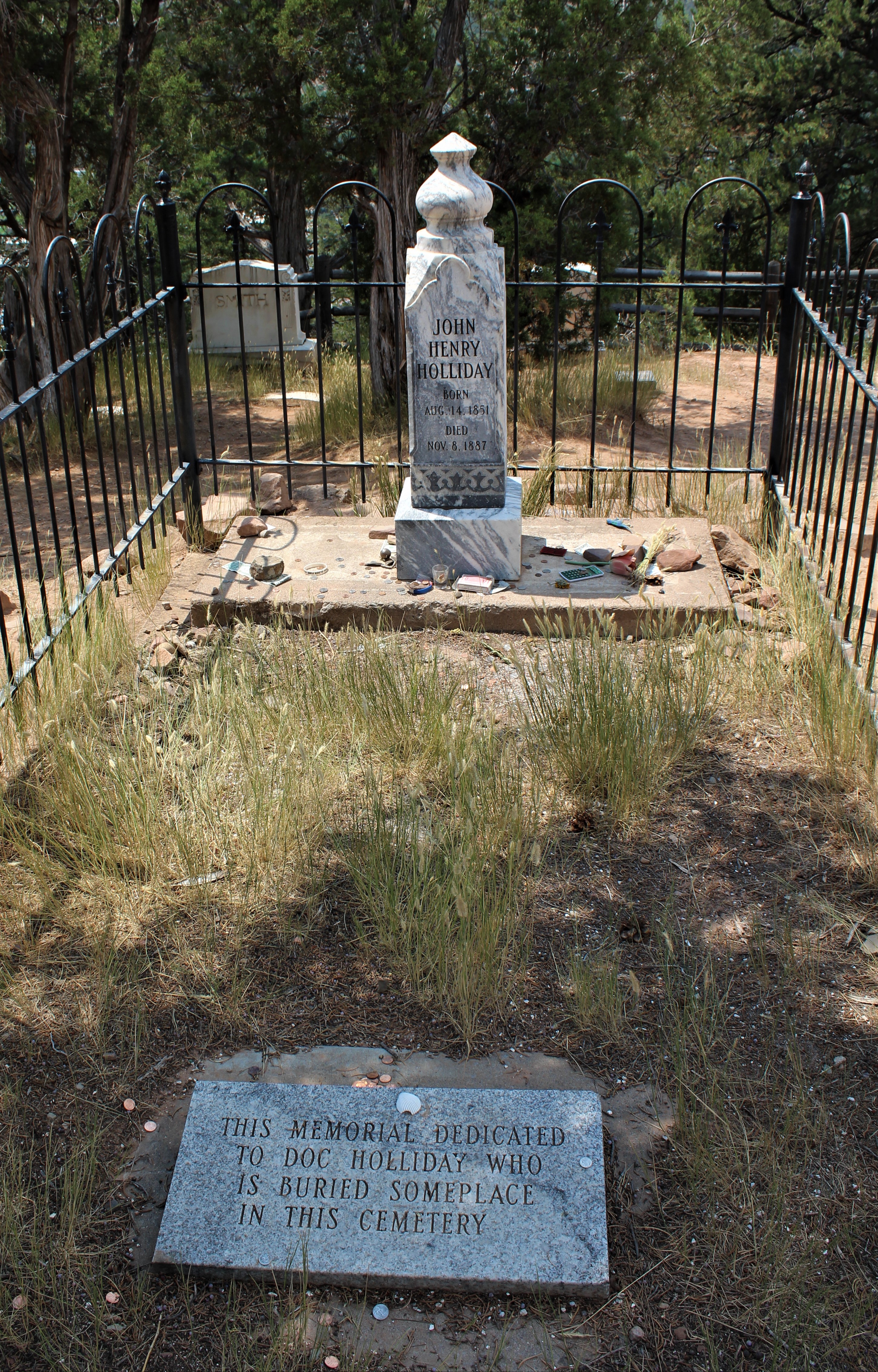 By 1887 Doc had been overcome by tuberculosis. He moved to Glenwood Springs in a last ditch effort for treatment but it was too late. On November 8, 1887, Doc succumbed to his illness and was buried in what was then known as “Pioneer Cemetery”. A little confusing but this cemetery is also known as Linwood Cemetery and Glenwood Cemetery. No wonder the records were lost so no one is absolutely sure which plot holds Doc, but he is here.