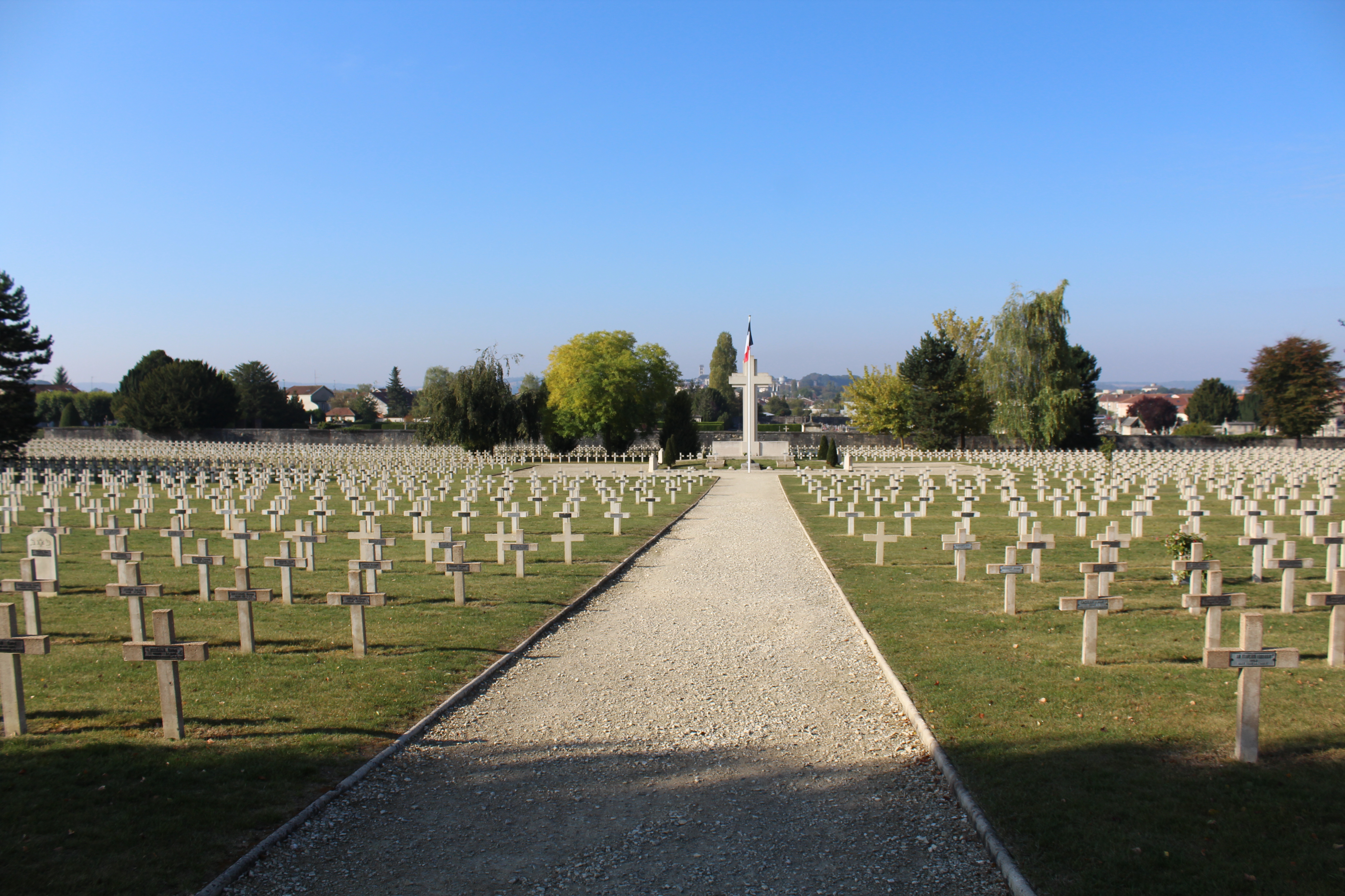 We stopped here to tour the WW1 museum and by accident came across Faubourg Pavè cemetery where 7 unknown soldiers are buried. Here is why this is unique, it’s the story of how France selected the unknown soldier to be buried under the Arc de Triumph. On 10 November 1920, Soldat (Private) Auguste Thien was chosen to select which unknown soldier would be laid to rest in Paris. 8 coffins of unknown soldiers were gathered from around France and laid in the Verdun Citadel. Private Thien then selected the 6th coffin because his Regiment numbers added up to 6. The remaining 7 coffins were buried in a special plot in the center of the Faubourg Pavè military cemetery on the eastern outskirts of Verdun.