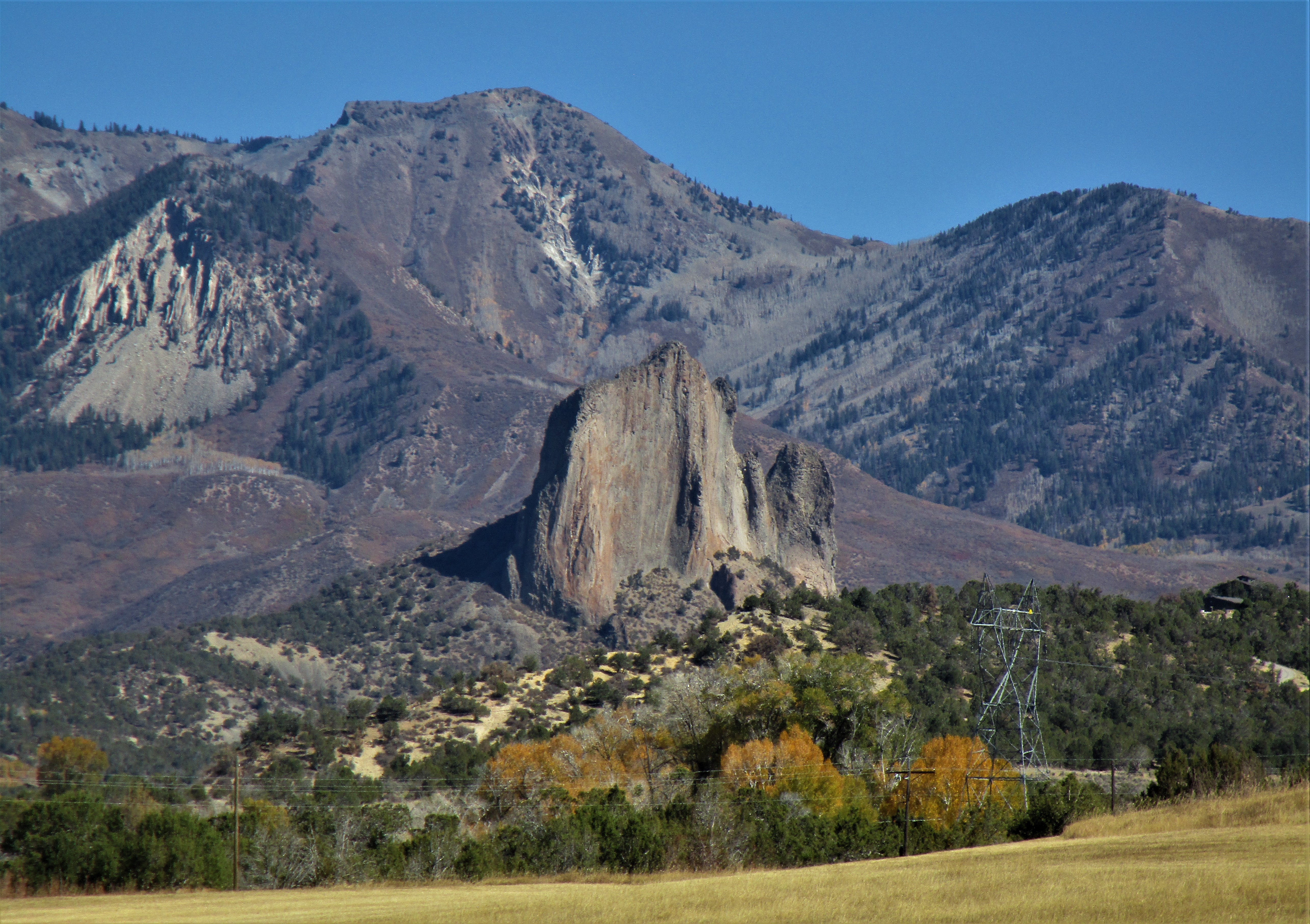 So on with the show. We decided to start with the small town of Somerset, just a bit farther south from Redstone and Marble (see earlier post for those towns) on highway 133. The road follows along the North Fork Gunnison River through some really nice canyons. We’re a bit late for most of the fall leaves but there are still lots of trees with beautiful colors. Two weeks ago, this would have been primo for viewing the changing of the leaves, if you could get through the tourists.
