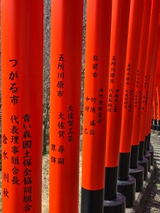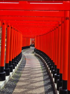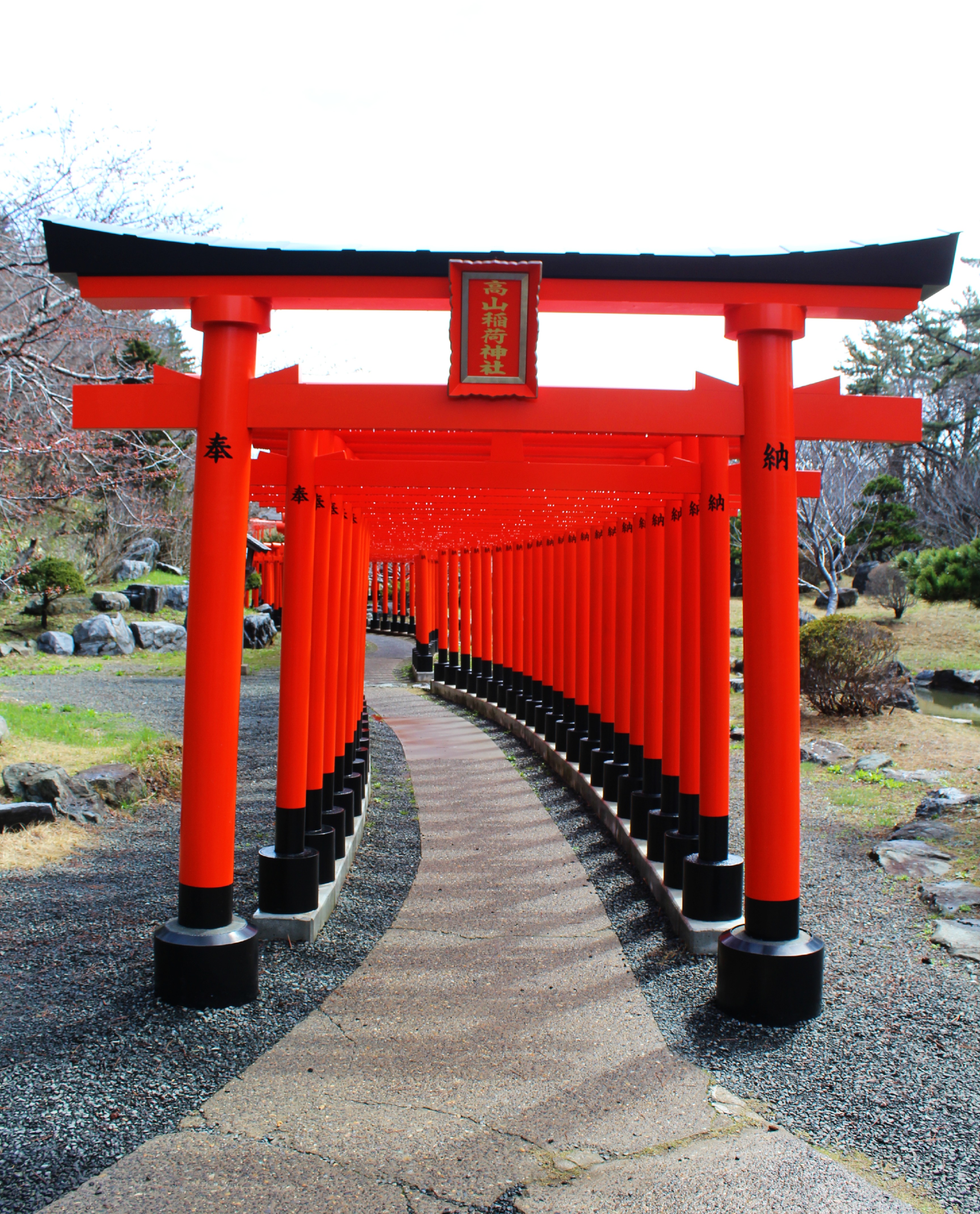 Takayama Inari temple is unique in that it has 205 Tori gates marking the path to the temple. It is said that a temple was first built here in the 17th century, not sure if it it’s the same one that stands today. The shrine is dedicated to Inari Okami (a “kami” is a deity or spirit), in this particular case, it is a spirit of “foxes” and is one of the principal kami of the Shinto religion. There is a long line of “fox” statues lining the hillside at the end of the tori gates. Worship of “inari” is believed to have originated around the 5th century.