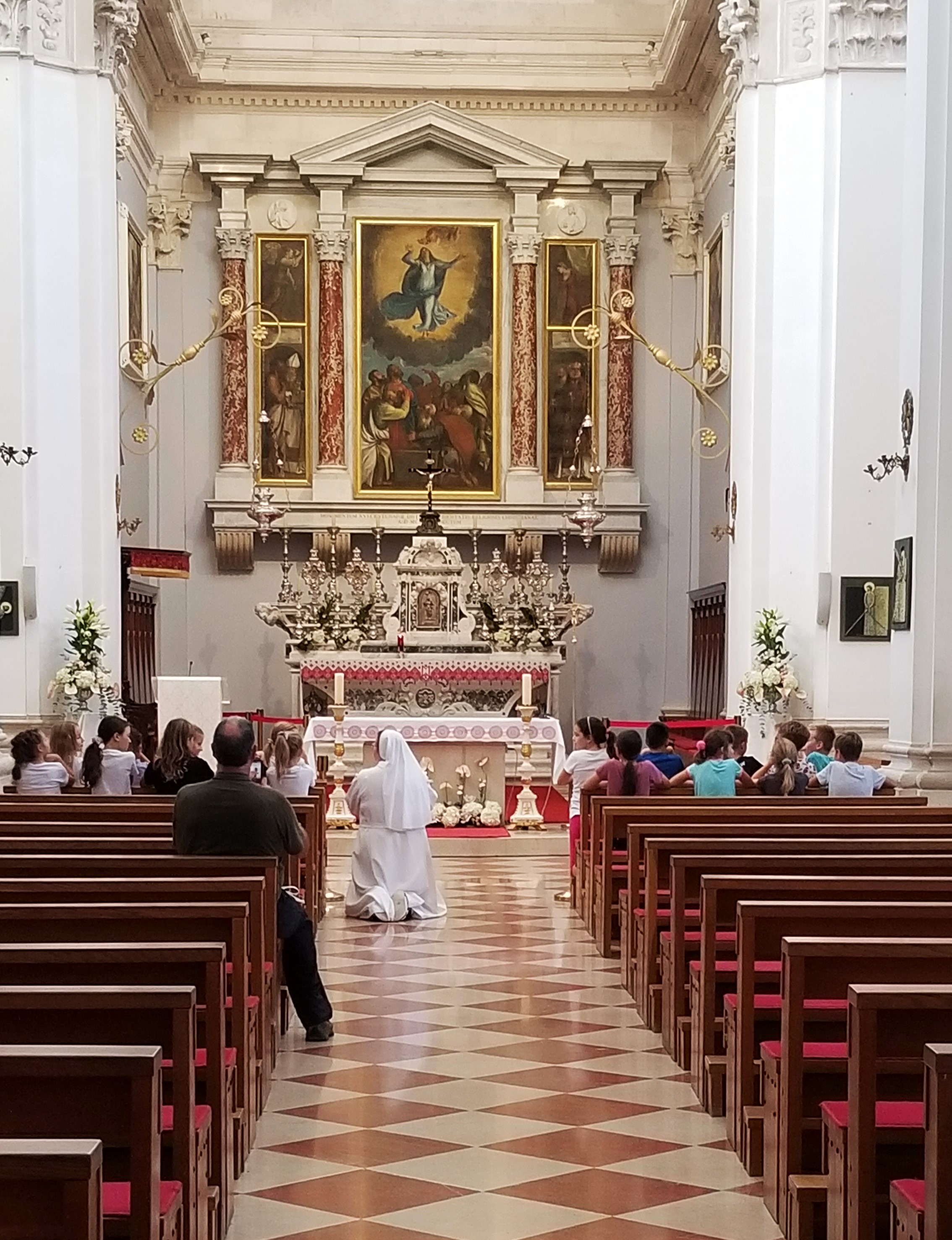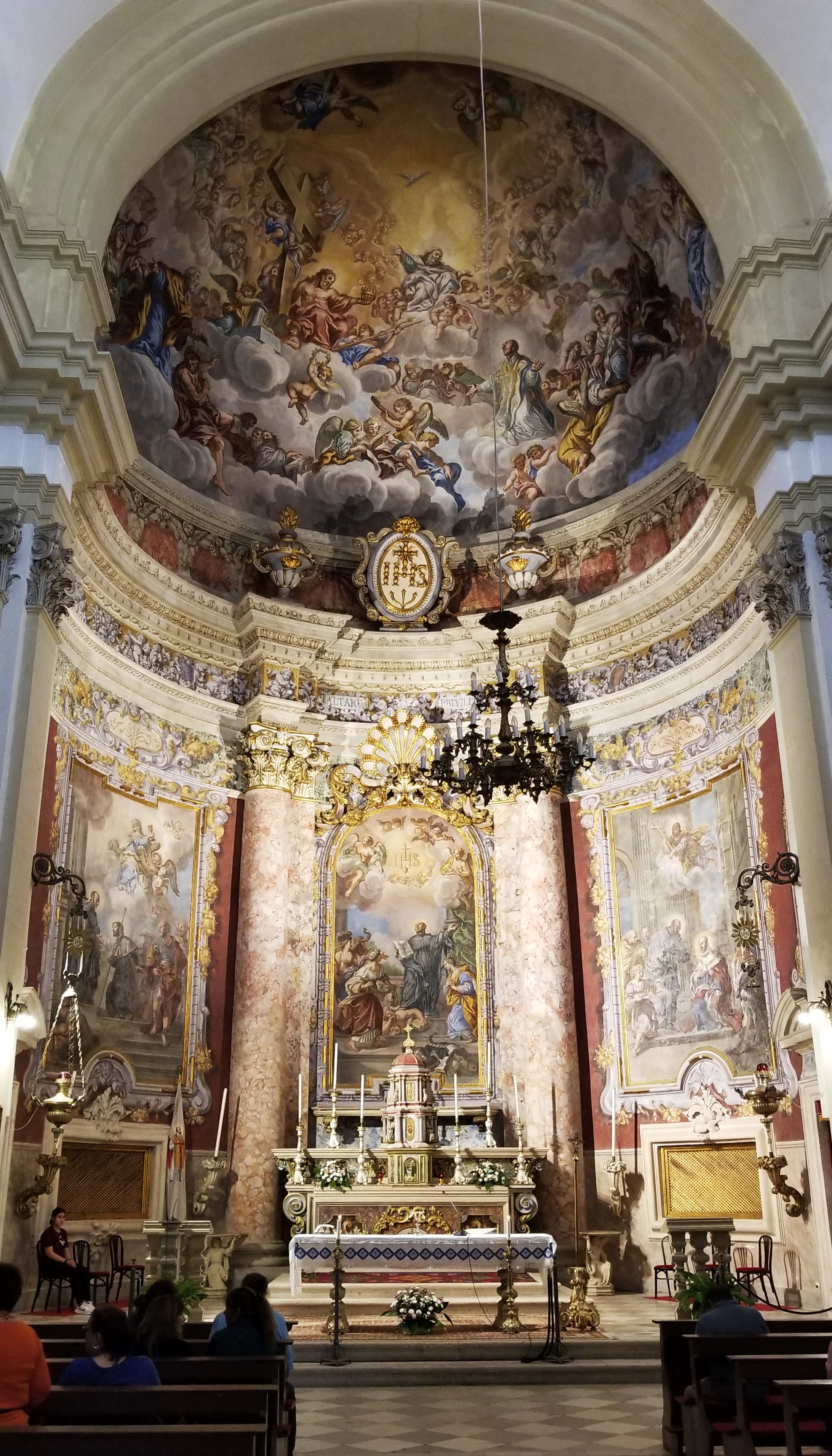 One more church to go, Saint Ignatius. This one is located at the top of the stairway used in the Game of thrones series where Cersie made her “walk of shame”. We’ll get to those after this church. Saint Ignatius church was built between 1699-1725 with a single nave and side chapels. It was built in Baroque style and has frescoes of the Saint’s life throughout the interior. The bell tower has bells from 1355 which are the oldest bells in Dubrovnik. The facade is missing two statues the were lost at sea while being transported to Dubrovnik.