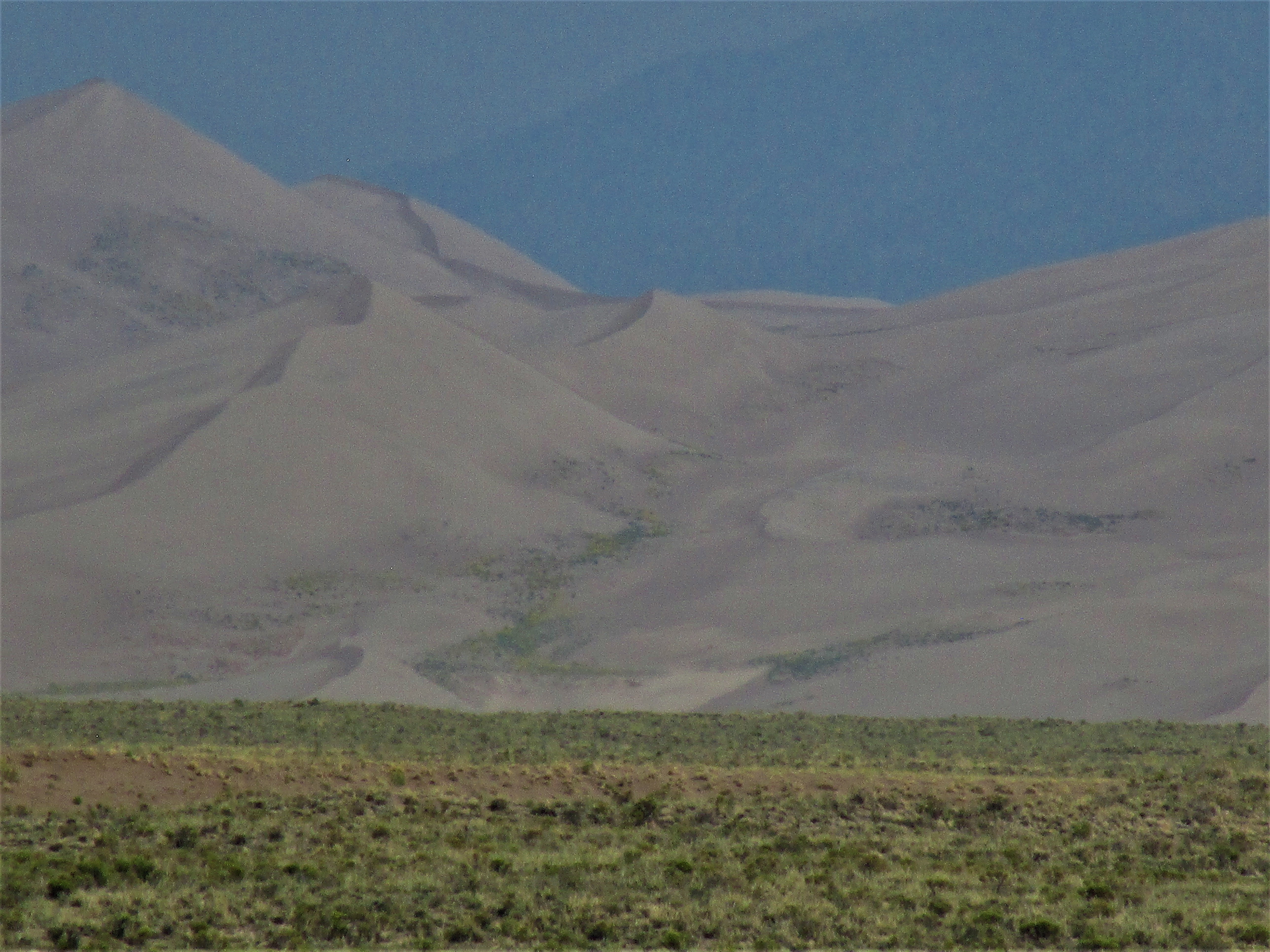 The Dunes are one of America’s great national parks. Established in 1932 by President Hoover, the park encompassed some 35,500 acres.  Over the years the park size has been increased to include the Sangre de Cristo Range and now covers some 149,000 acres. Formed thousands of years ago when what was at that time Lake Alamosa, collapsed into a volcanic chasm draining the lake and forming a dry bed. Winds blew the residual sand towards the mountains where it collected onto hills. Later during the storm season, the winds blew the other direction forming ridges or mountains of sand. To the best of anyone’s knowledge, that’s how it was formed.
