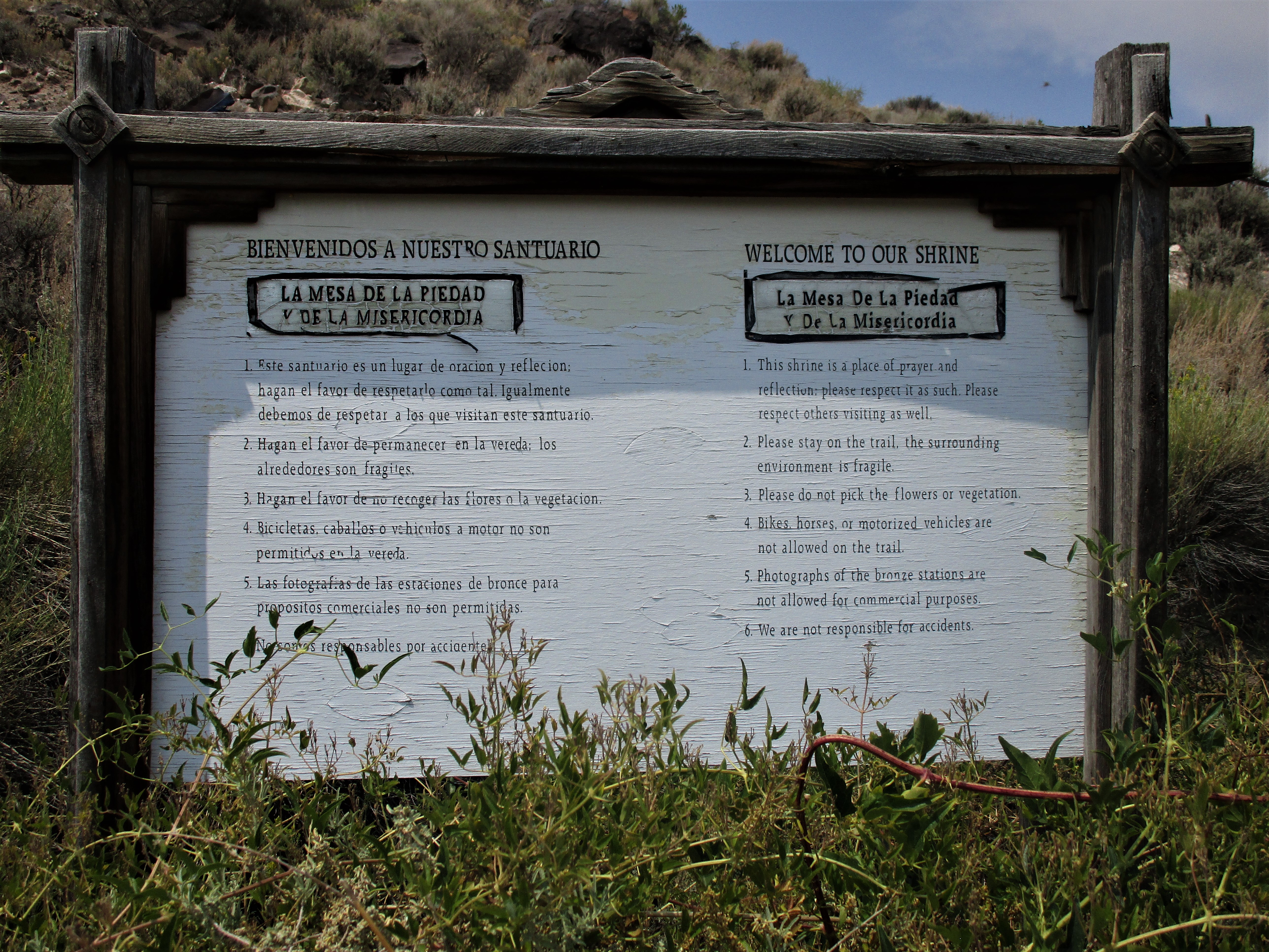 Continuing on to our next stop, the Shrine of the Stations of the Cross in the town of San Luis. About 20 minutes from Fort Garland is the small town of San Luis. Billed as the oldest town in Colorado, founded in 1851, San Luis is home to a unique religious setting, the Shrine of the Stations of the Cross. The “Shrine” is actually a walk leading up the hillside to the chapel with the 14 Stations of the Cross depicted in bronze castings along the way. The castings were made by the local artist, Hubert Maestas.
