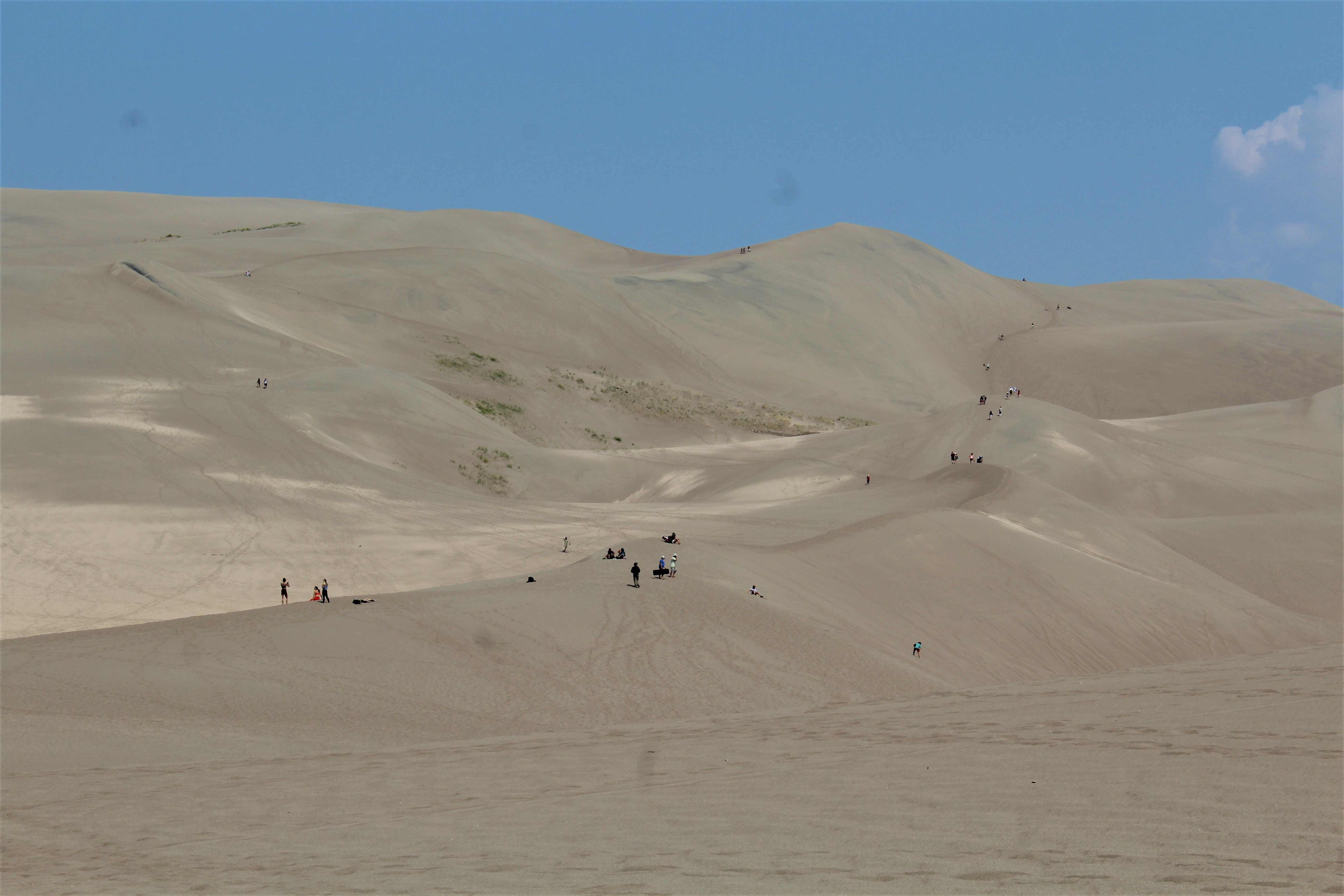 But if you’re looking for a more relaxed type of adventure, try sand boarding or sand sledding. There are several shops in the nearby towns of Blanca and Hooper that rent equipment specifically designed for sand. Keep in mind that the sand can be hot, around 1500 in the summer, so good boots or shoes are a must. Oh, and water, bring lots of water for the hike up the mountain. Instead of the 1-hour hike to the top, we decided to walk to the first ridge and enjoy watching the boarders trudge up the sand.