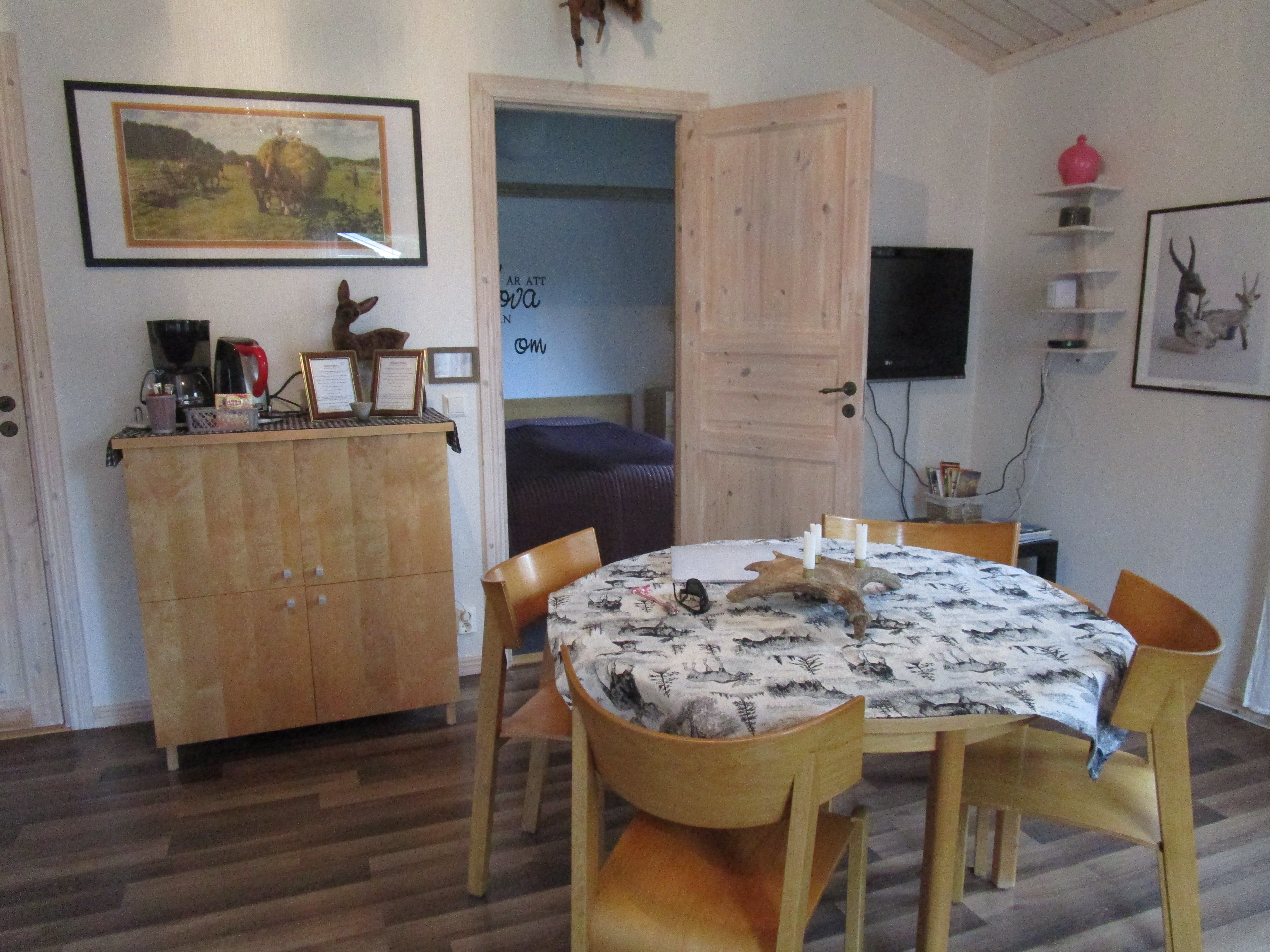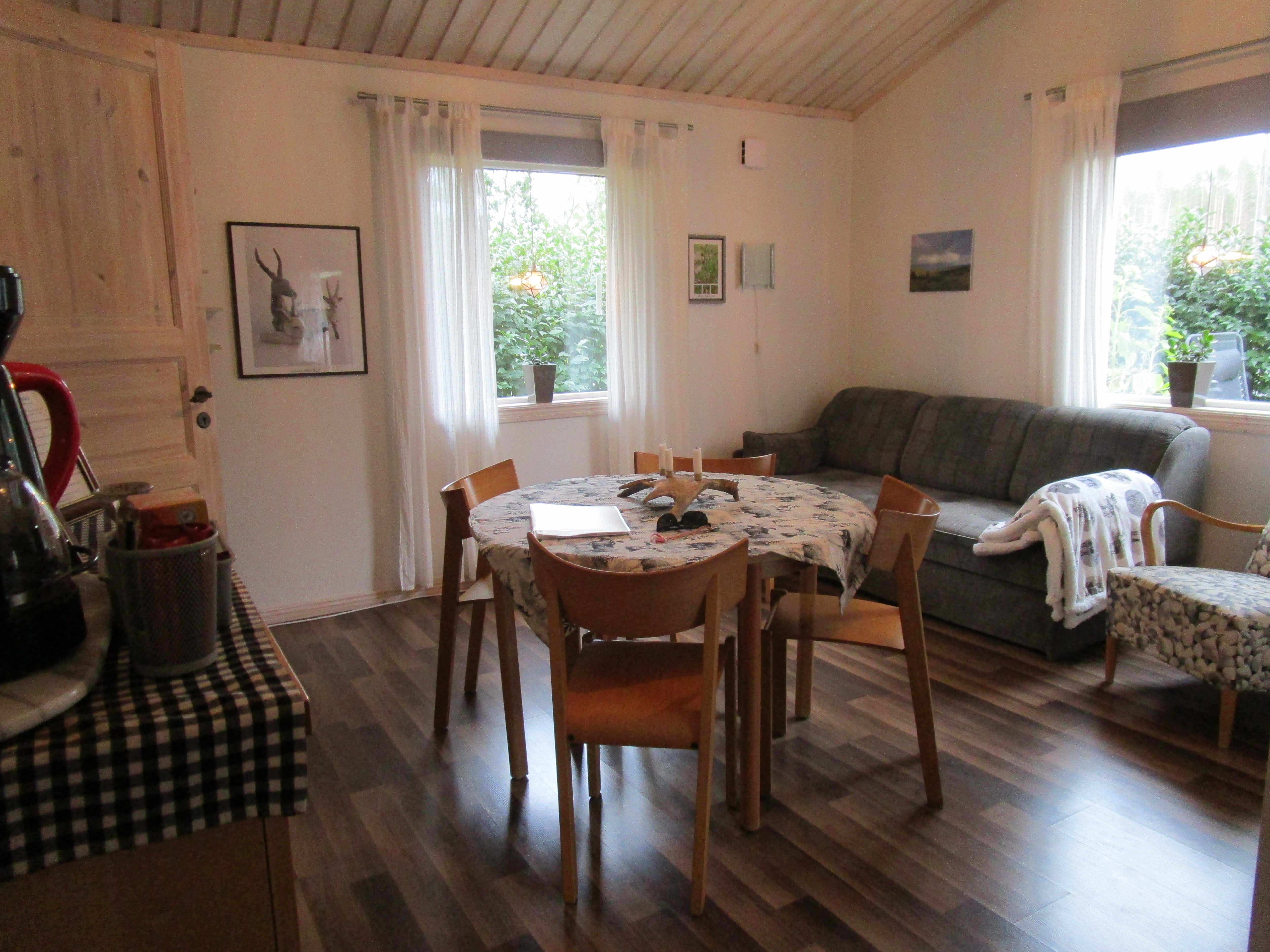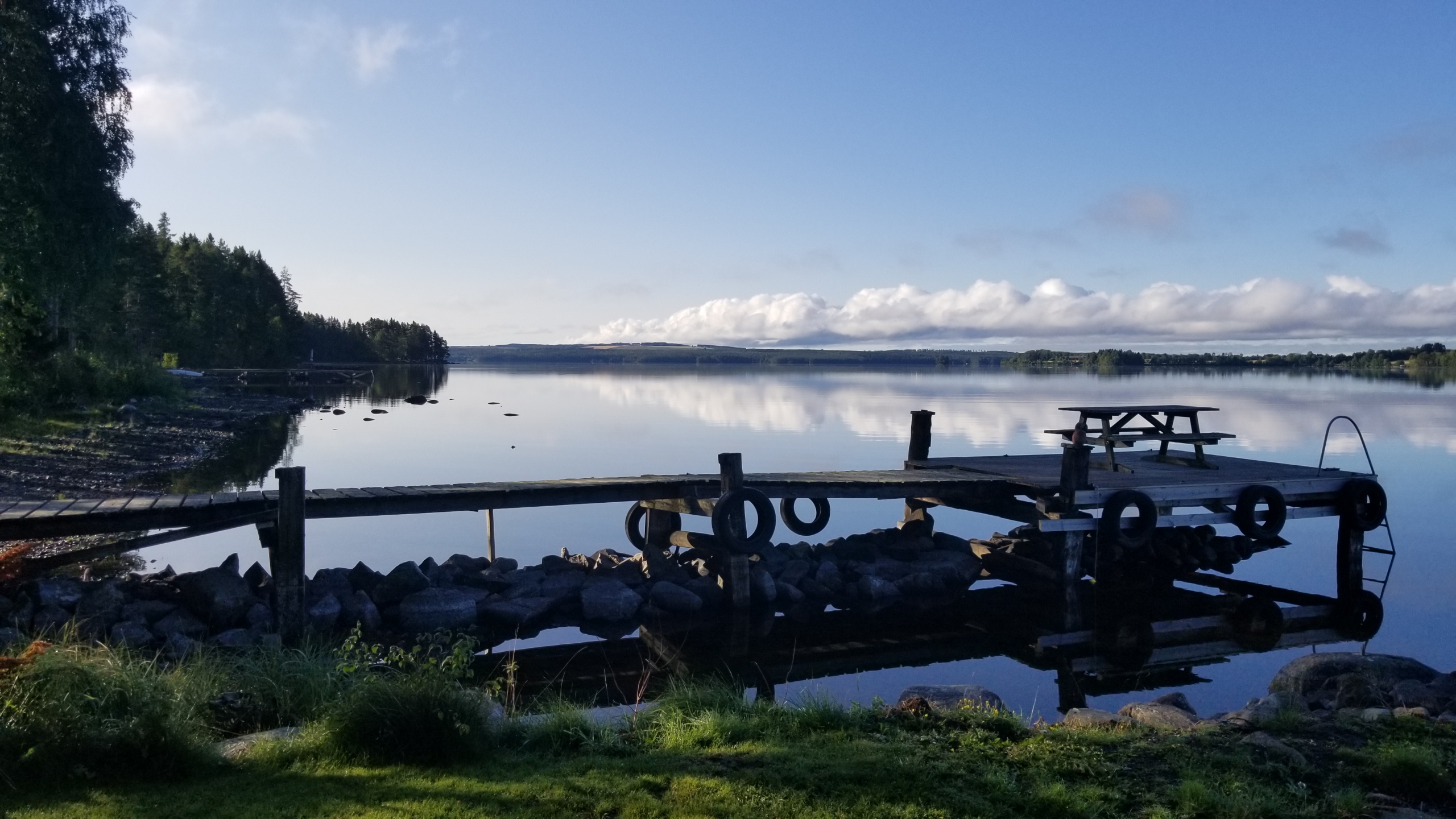 Won’t bore you with the blow-by-blow driving details. We made it to our cabin in Krokom, unpacked and now……enjoying a glass of wine. We were met by our hosts, Anders & Monica who were very welcoming and pleasant. They live on this beautiful lake next door to the rental cabin. They originally built the cabin for their kids to have a place to get away from Mom & Dad when they visited,but now they rent it out to vacationers. Perfect for us!