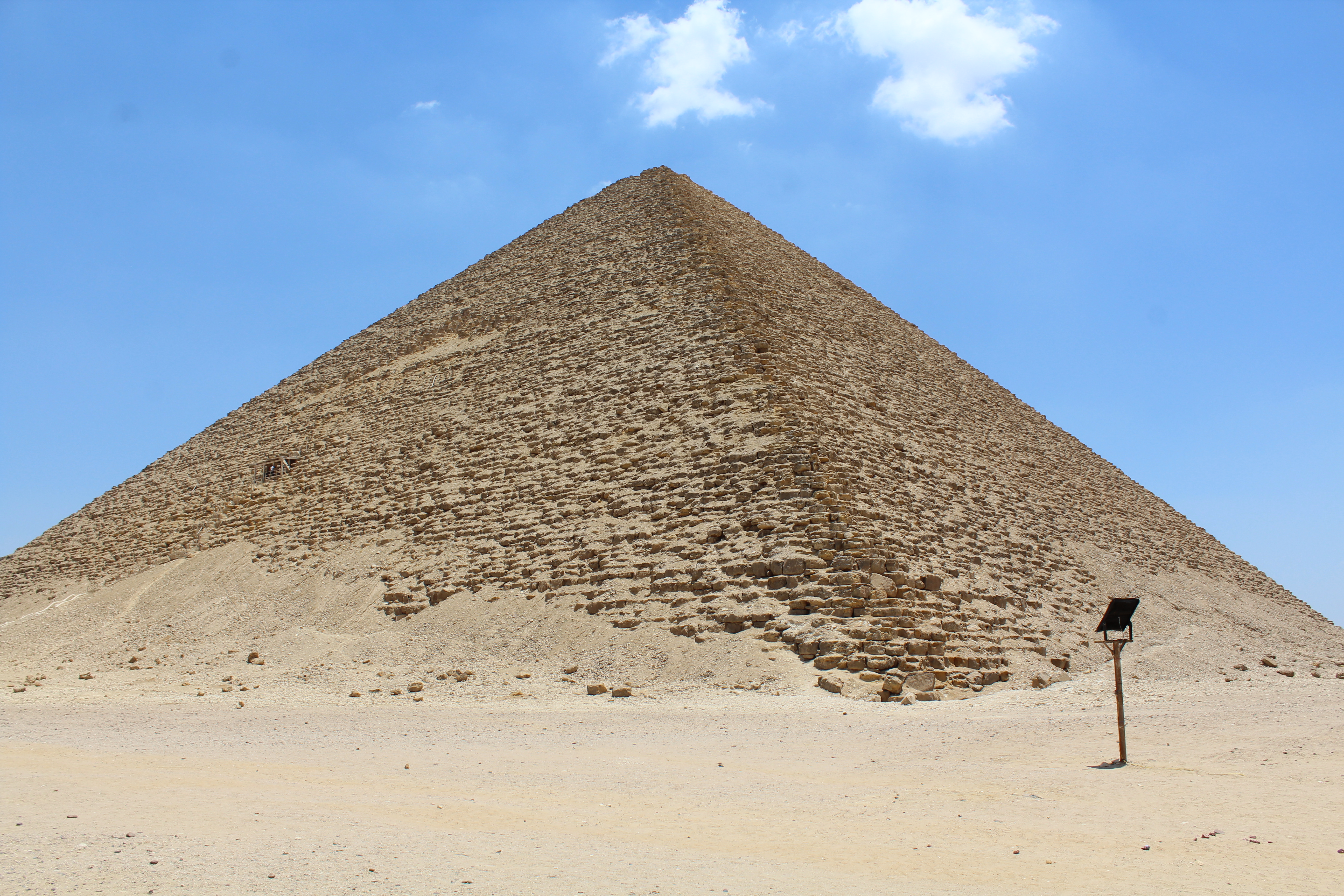 Next was the Red Pyramid. Built in the fourth dynasty, around 2613 to 2494 BC. Known as the Red Pyramid due to the color of the limestone used in its construction, this was the third pyramid built by King Sneferu in his attempt to build the better mouse trap. This one actually worked although not at the same angle as the Great Pyramid. The Red Pyramid is a constant 43 degrees so it’s a bit squatty. It is believed that this pyramid is the first “smooth” sided pyramid that didn’t collapse.