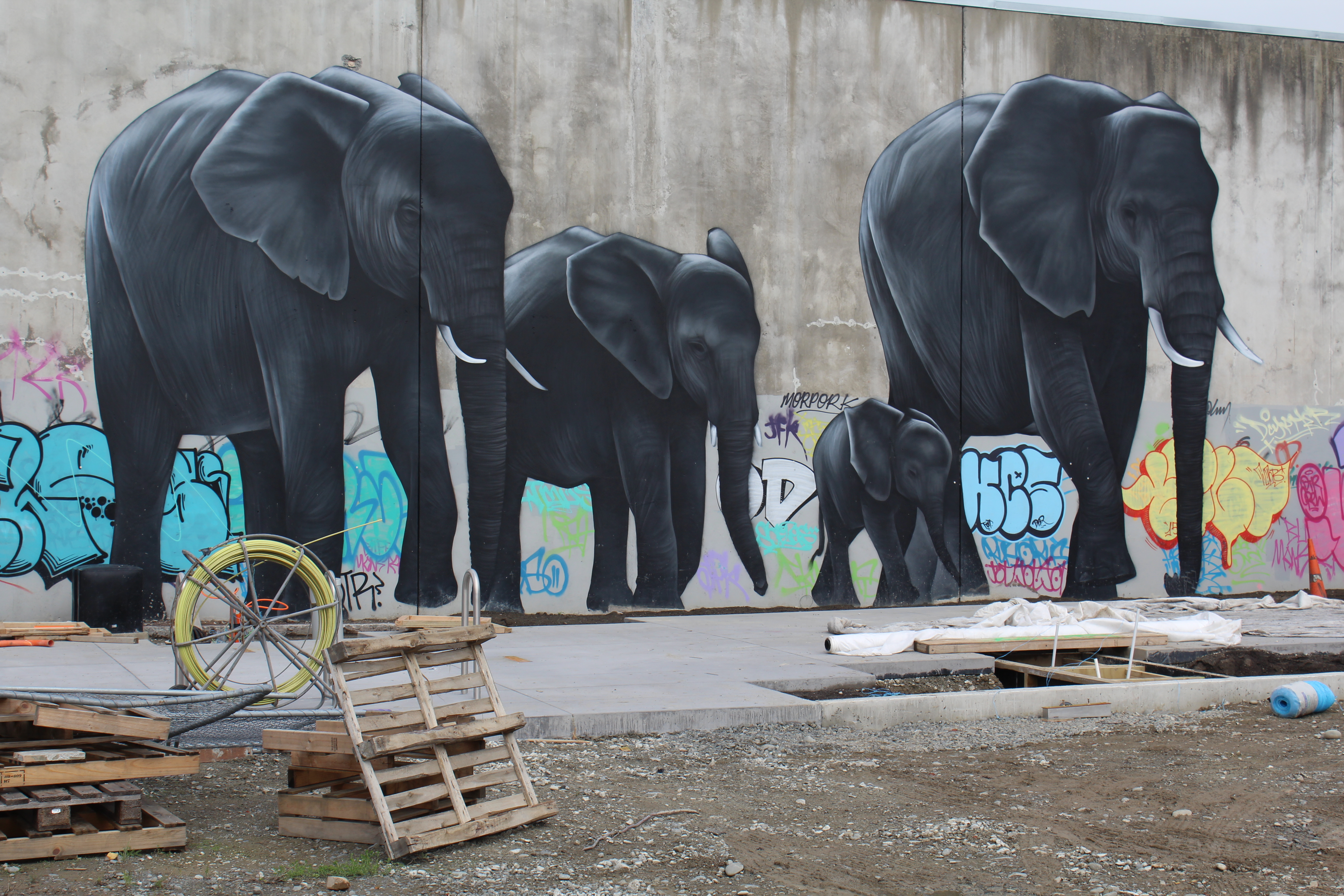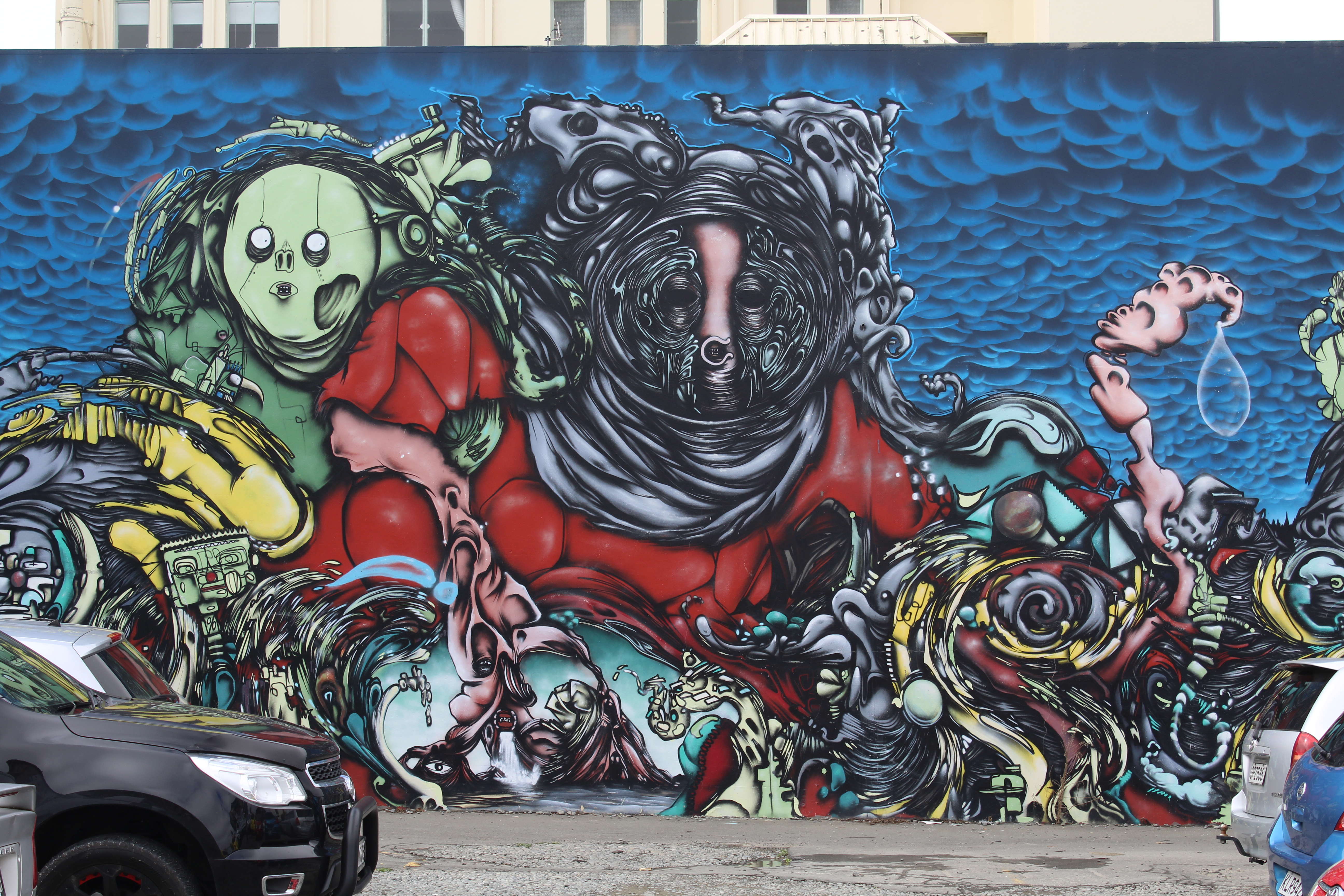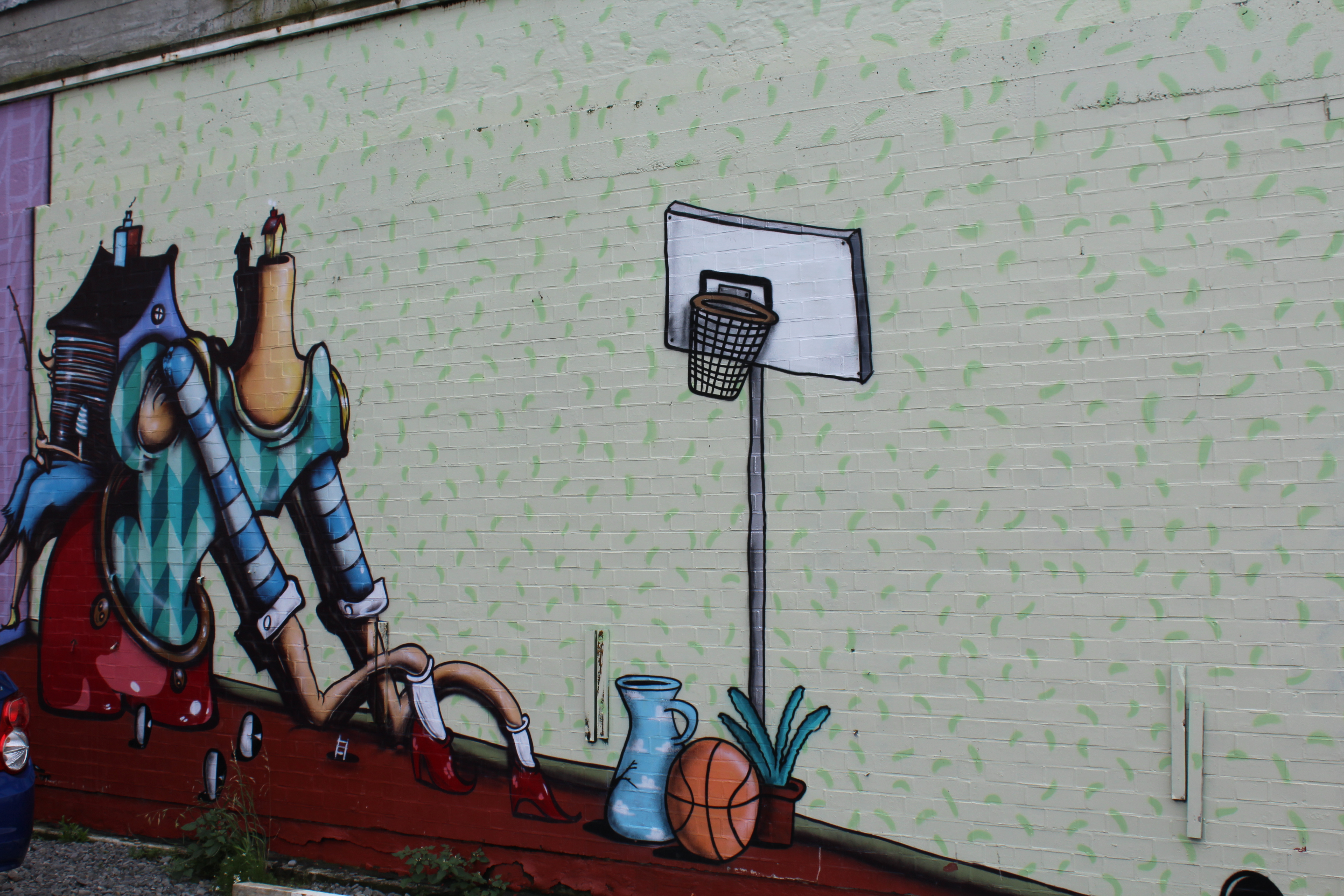 We found a parking lot to rest the Kiwimobile and started walking through the city. There must have been some type of commissioning for street art because there is graffiti everywhere you look. Not the gang crap you see in low rent areas of the states, but good quality murals depicting everything from gremlins and fairies, to animals and humans. Very nicely done and takes your attention away from the fact that the building being used as a canvas is scheduled for demolition.