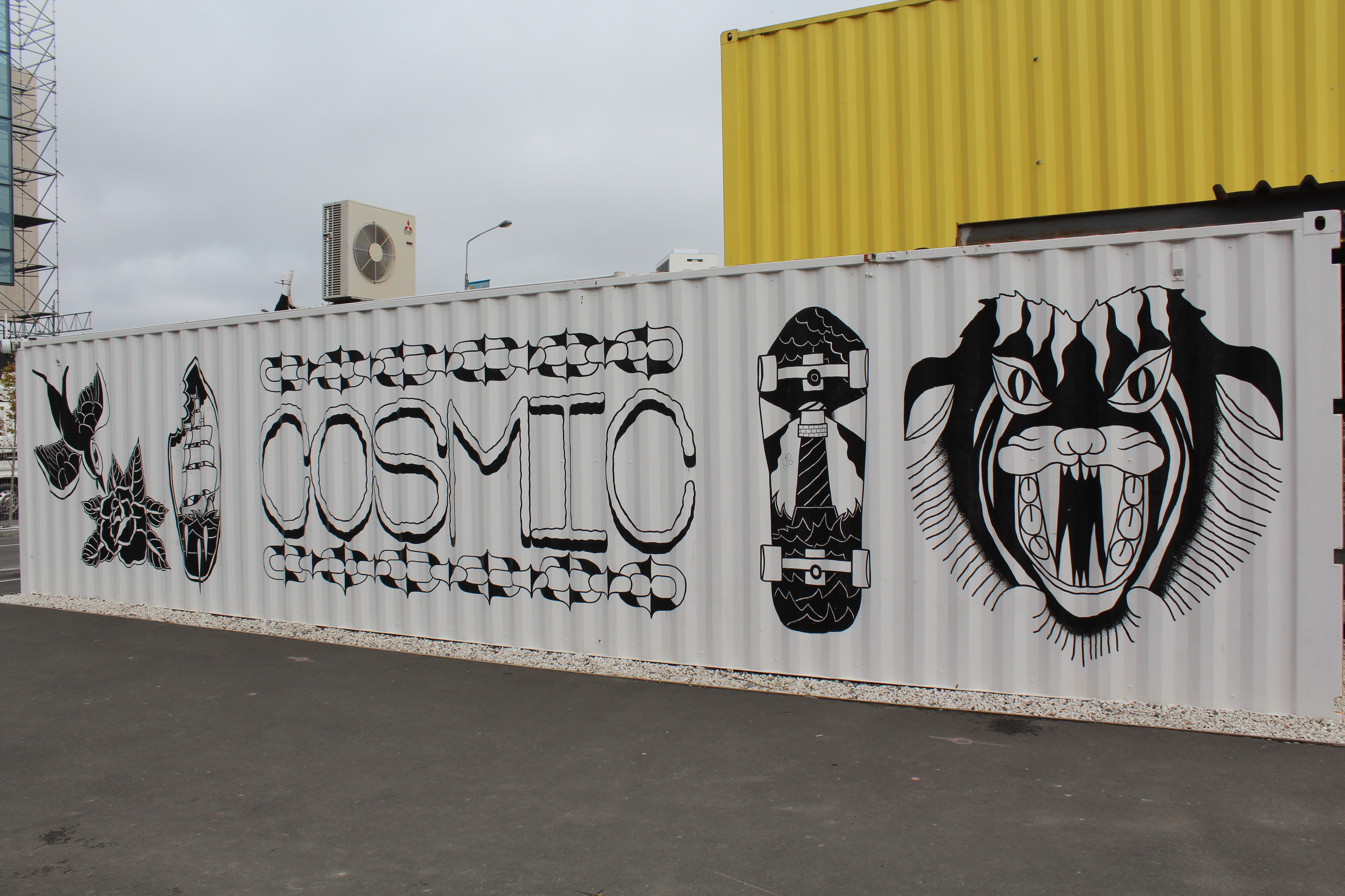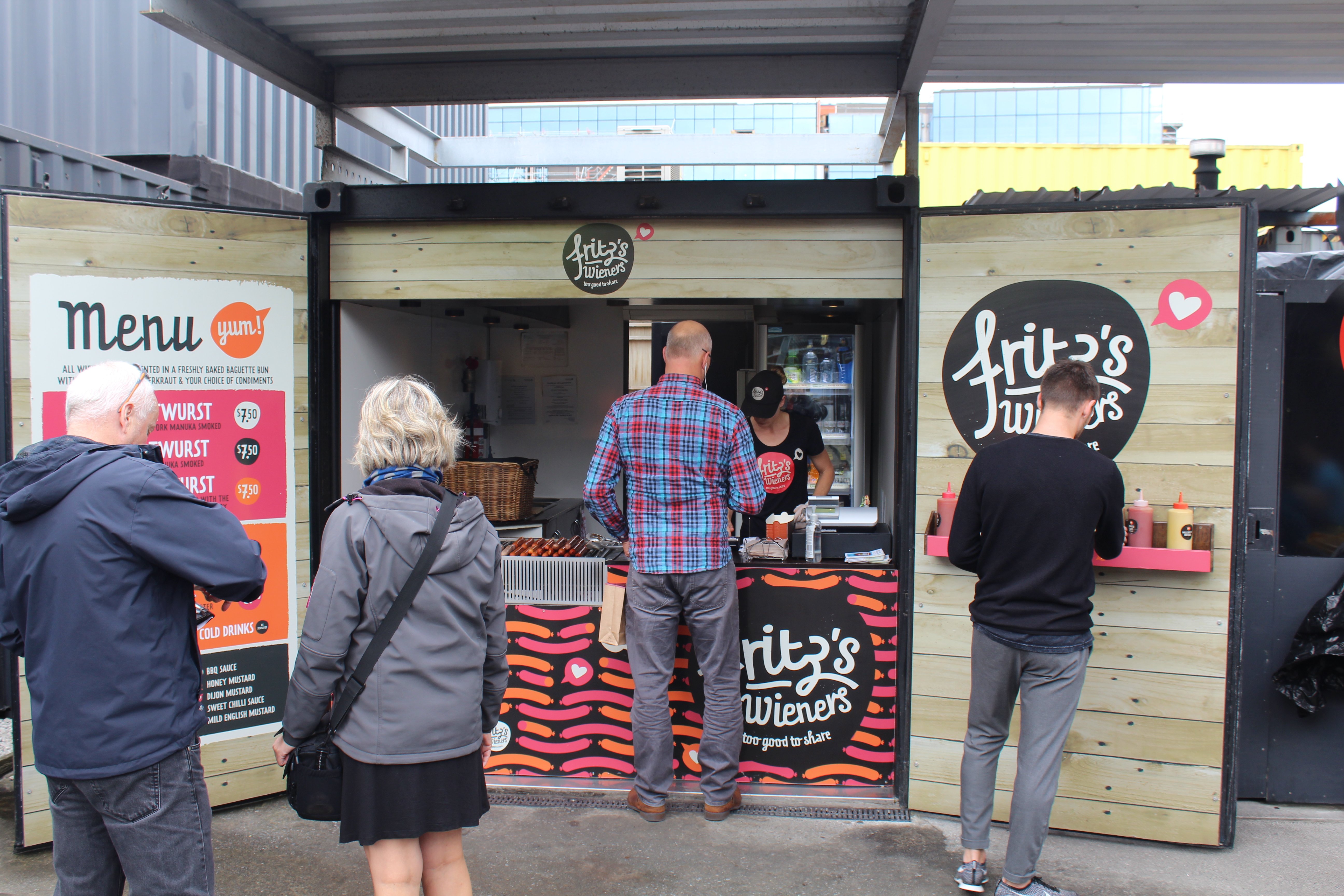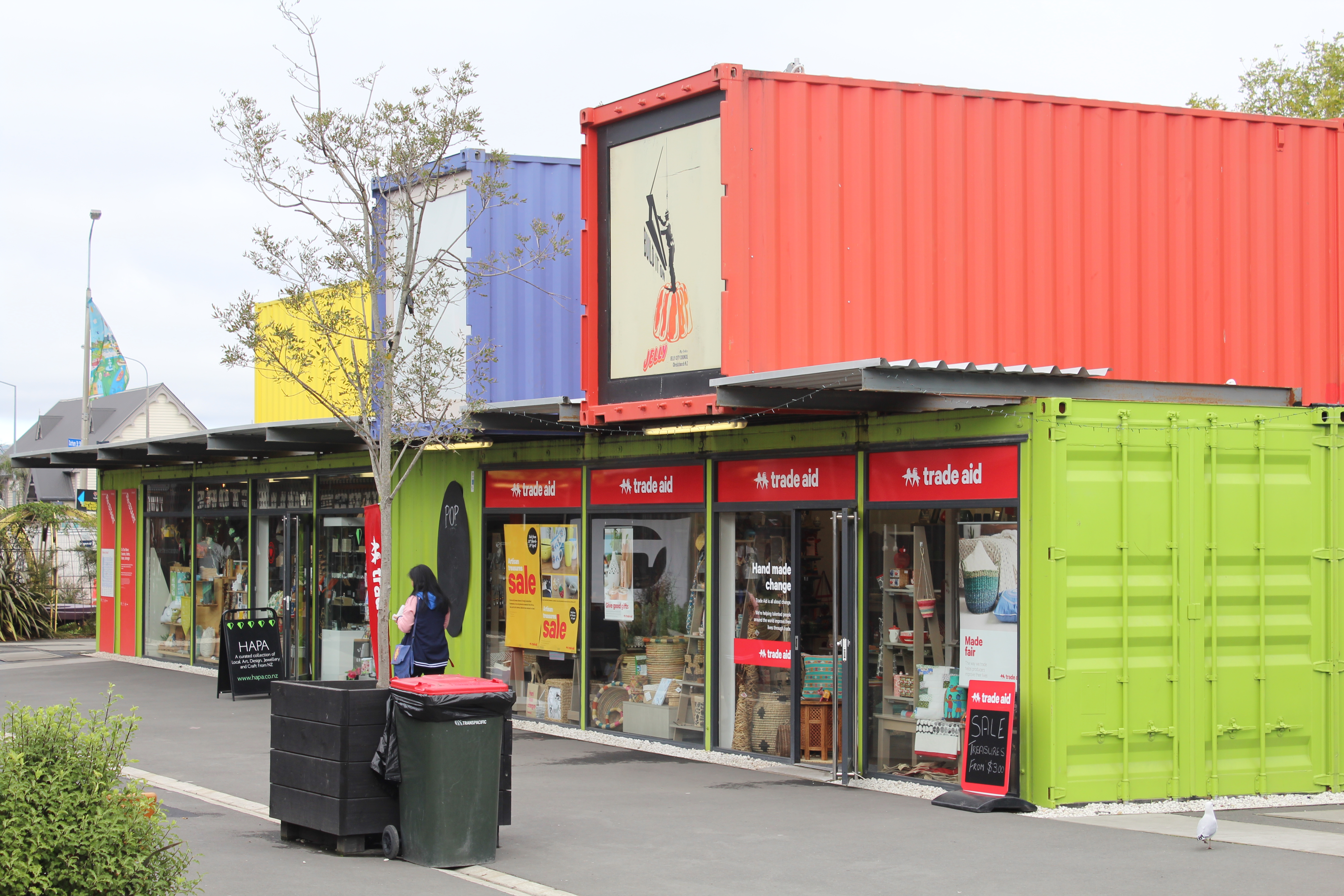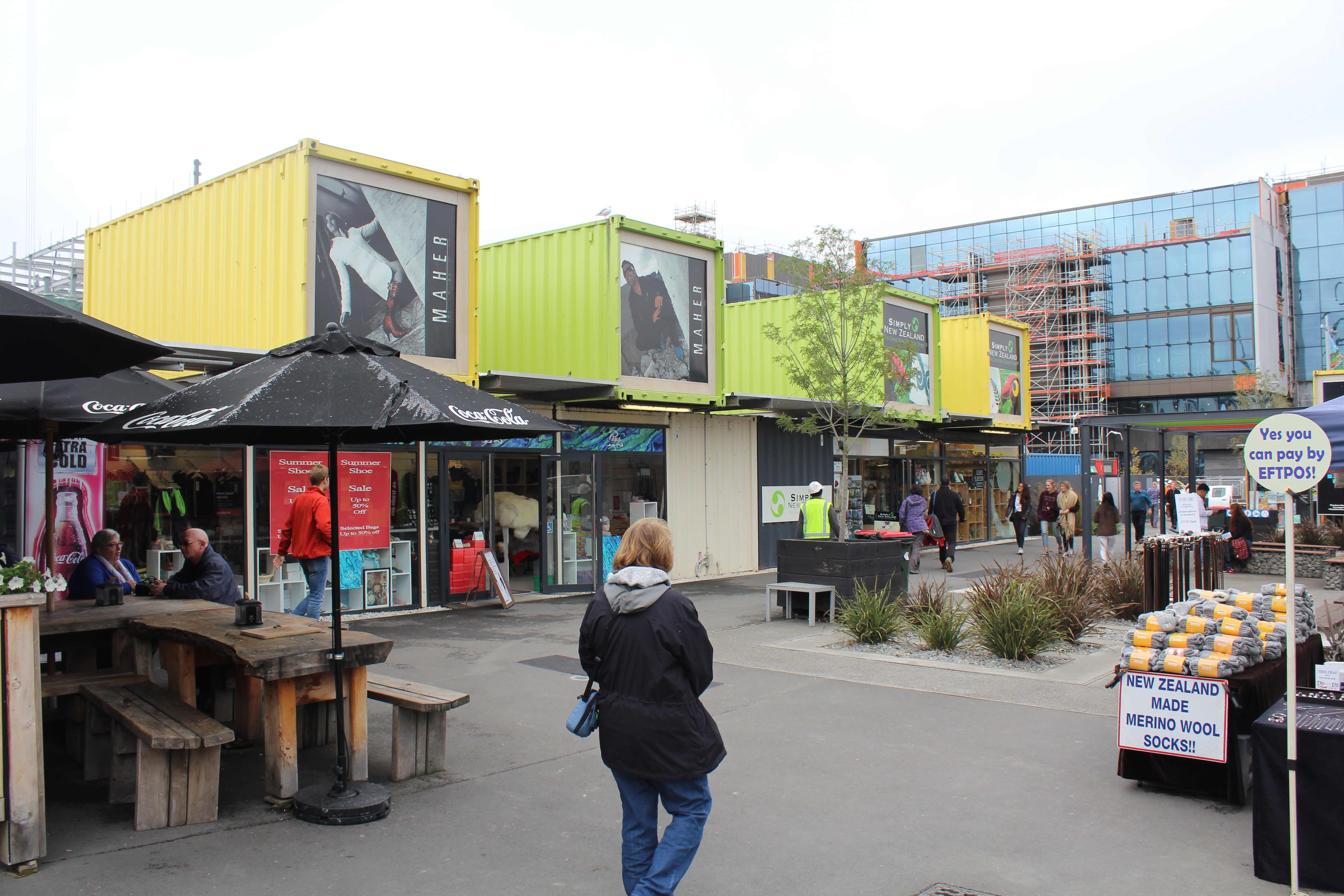 We strolled along until we came across “Restart Mall” which incorporated a neat concept to get businesses back up and running quickly. They used shipping containers to house shops! Probably somewhere in the neighborhood of 20-30 containers are bolted / welded together to make a small shopping district of clothing stores, souvenirs, public services and food vendors. Fun idea and seemed to bring quite a few people into what is otherwise just a construction zone.
