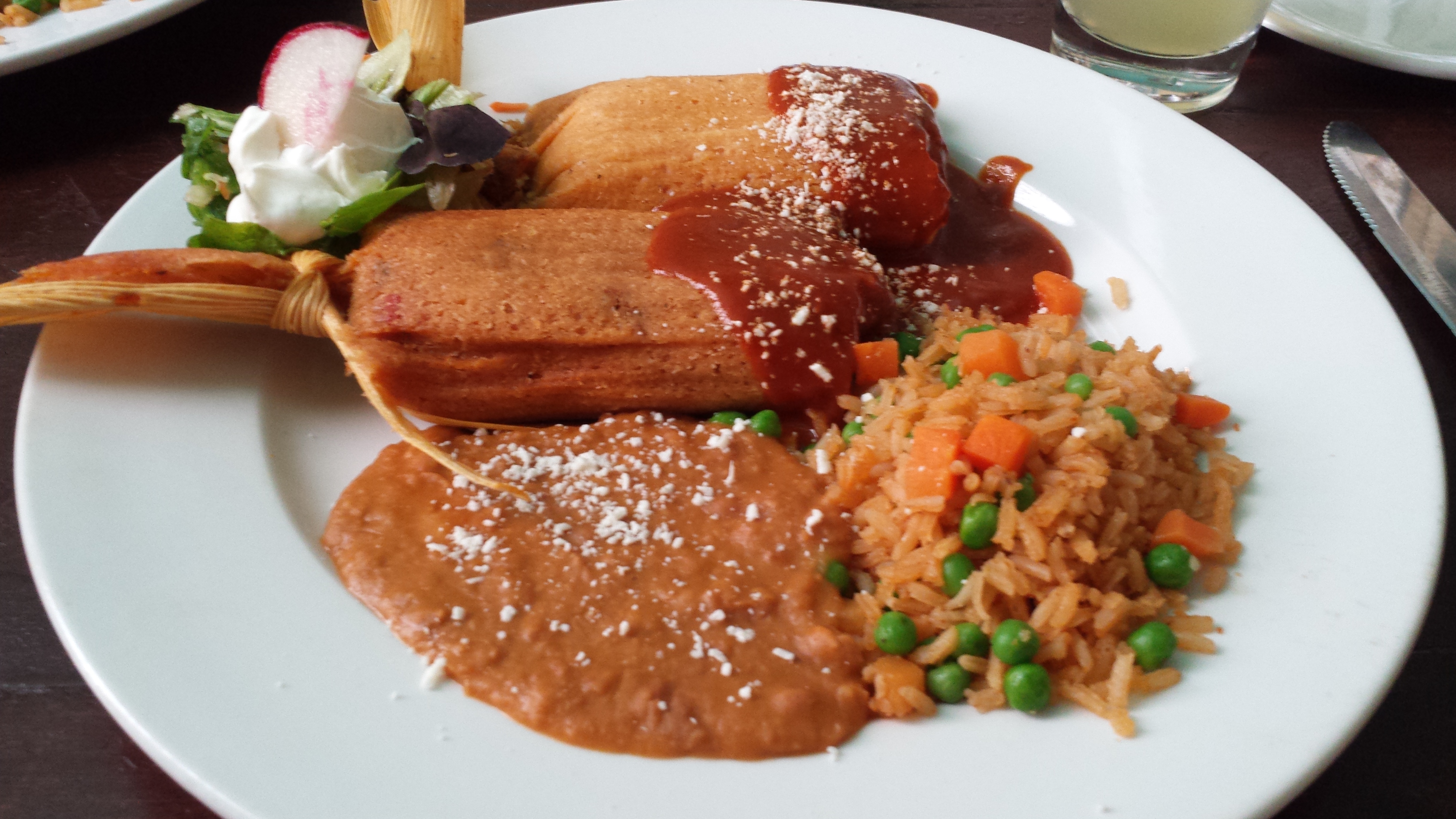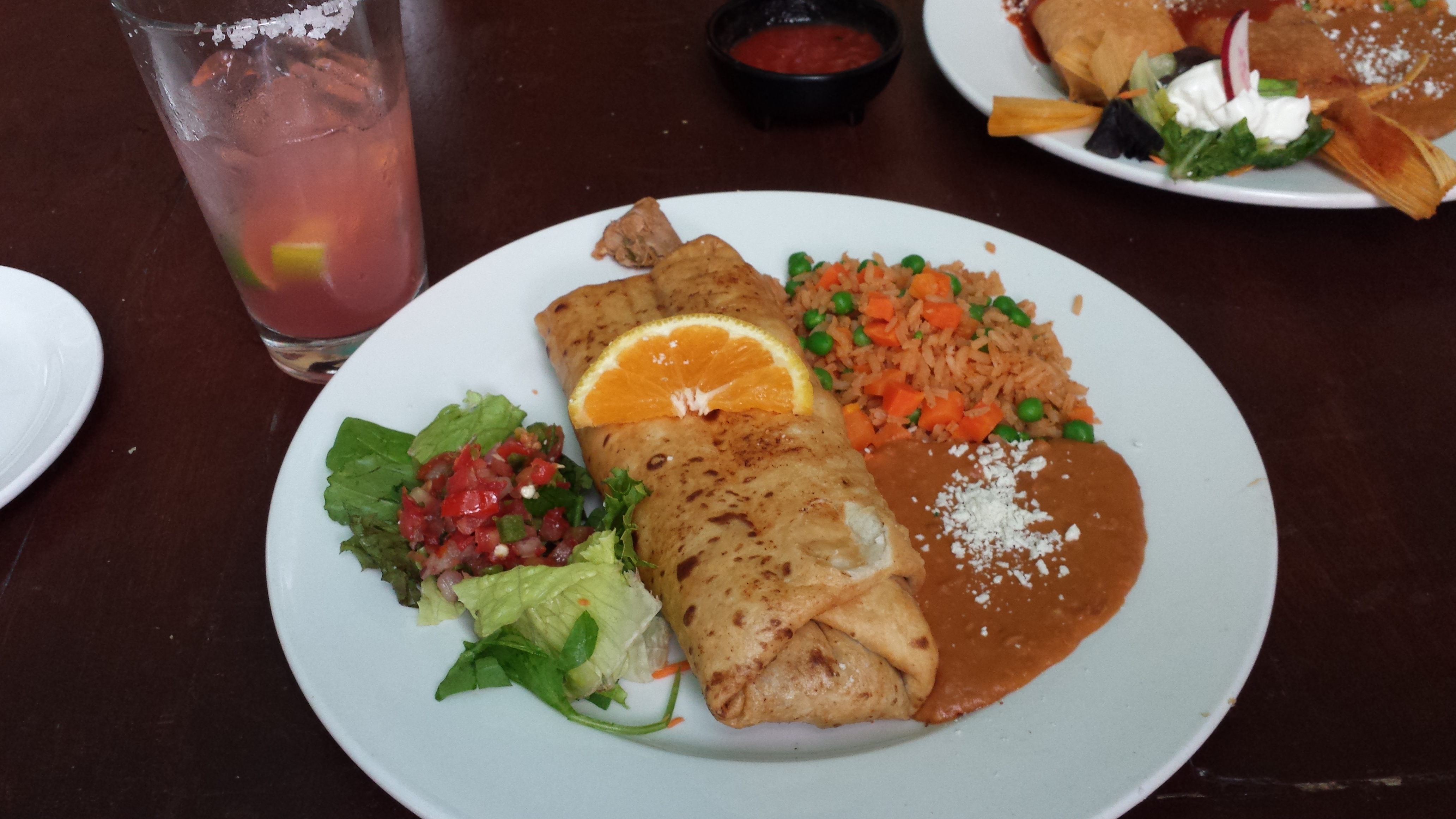 Anyway, back to lunch. While having our Margies, we enjoyed a bowl of hot, fresh tortilla chips with some really good red salsa, not too hot and not loaded with veggies! Ordered our meals, mine was a pork chimi with refried beans while Collette had chicken tamales. Both were really pretty good and nice serving sizes.