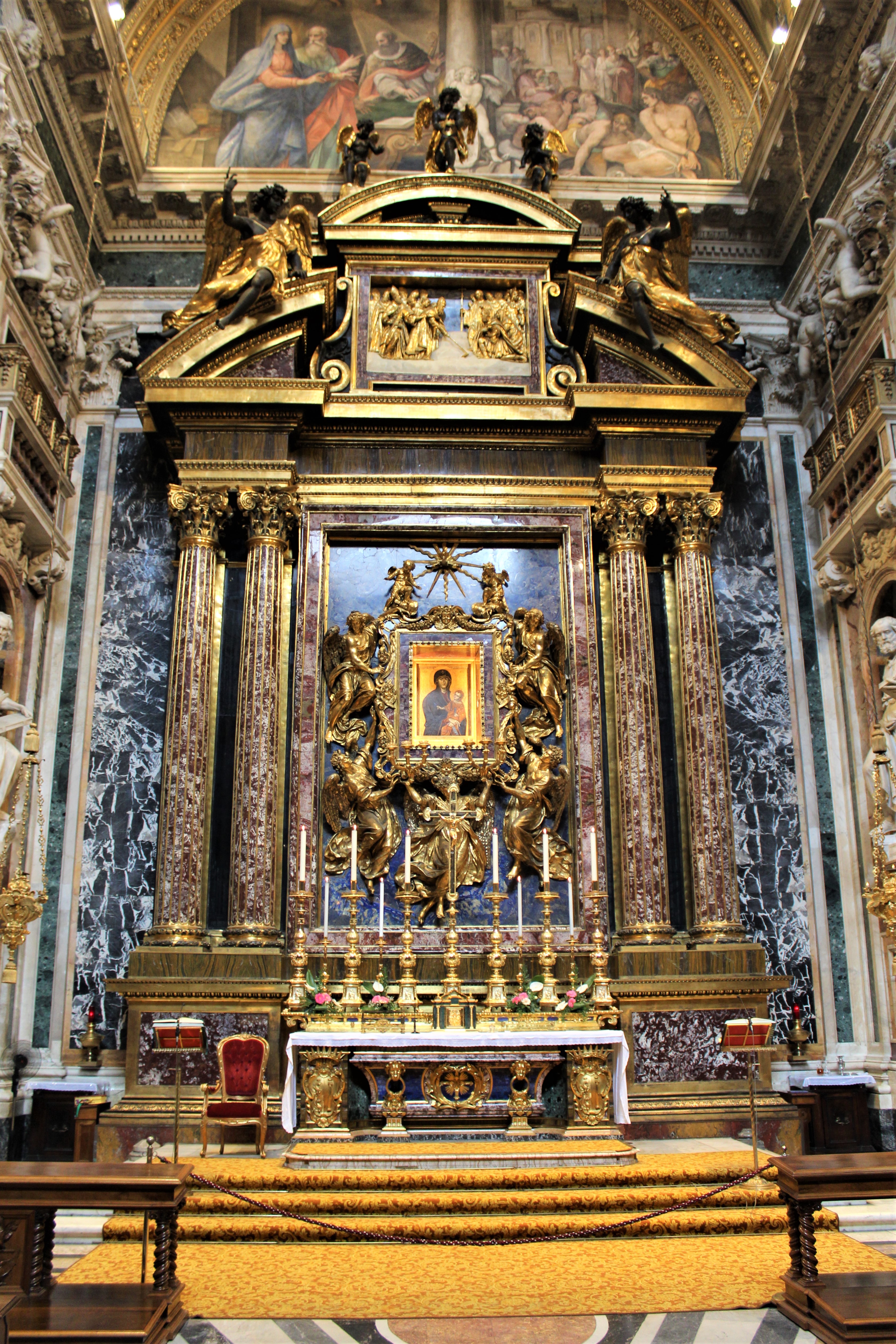 Day Two of our HOHO and our first stop is the Papal Basilica Santa Maria Maggiore. The construction of this basilica dates back to the 5th century, ~431 AD, and is said to have been inspired through a vision of the Virgin Mary to Patrician John and Pope Liberius. Since then many alterations and modifications have been made and nothing much of the original footprint remains.