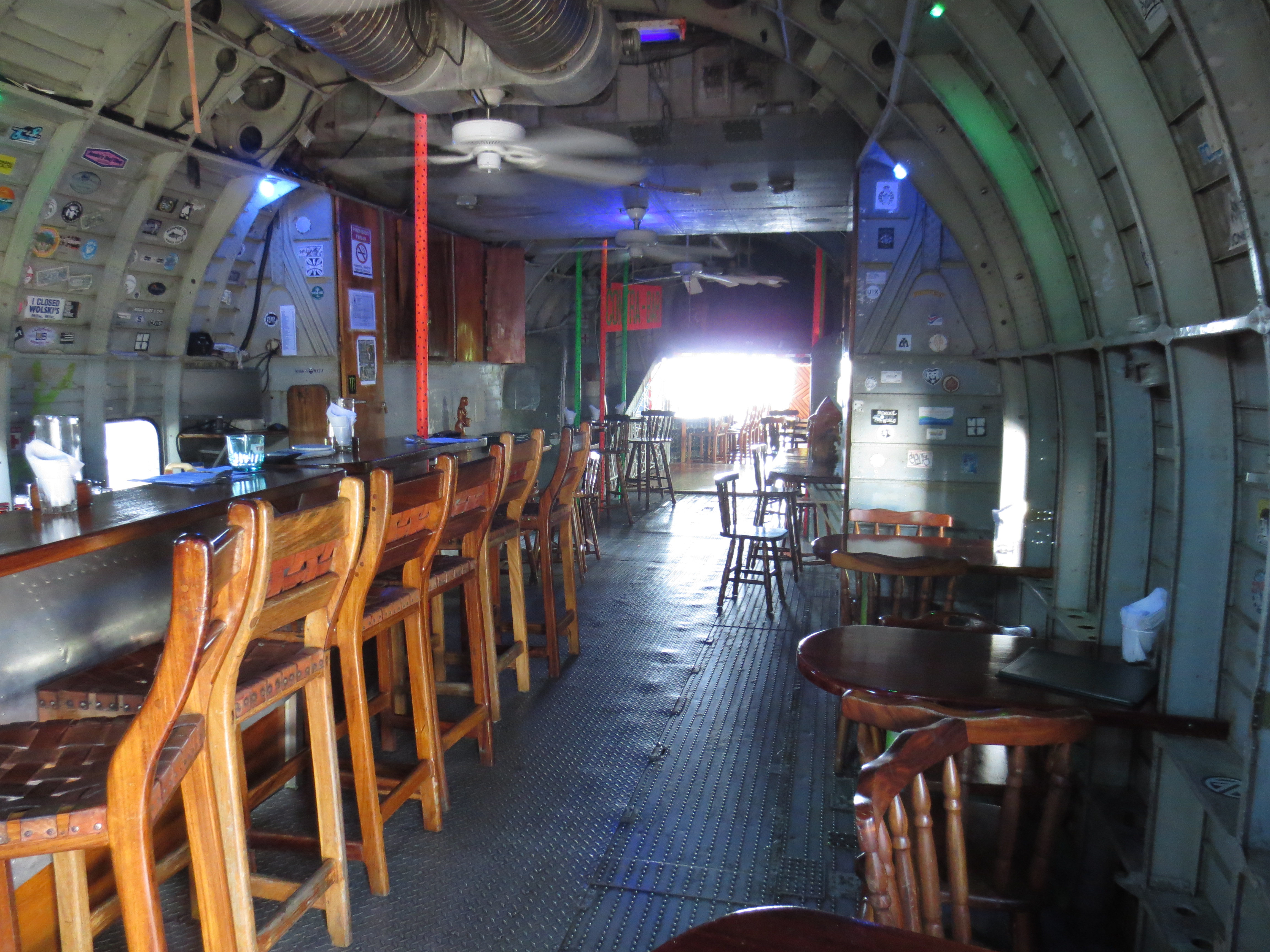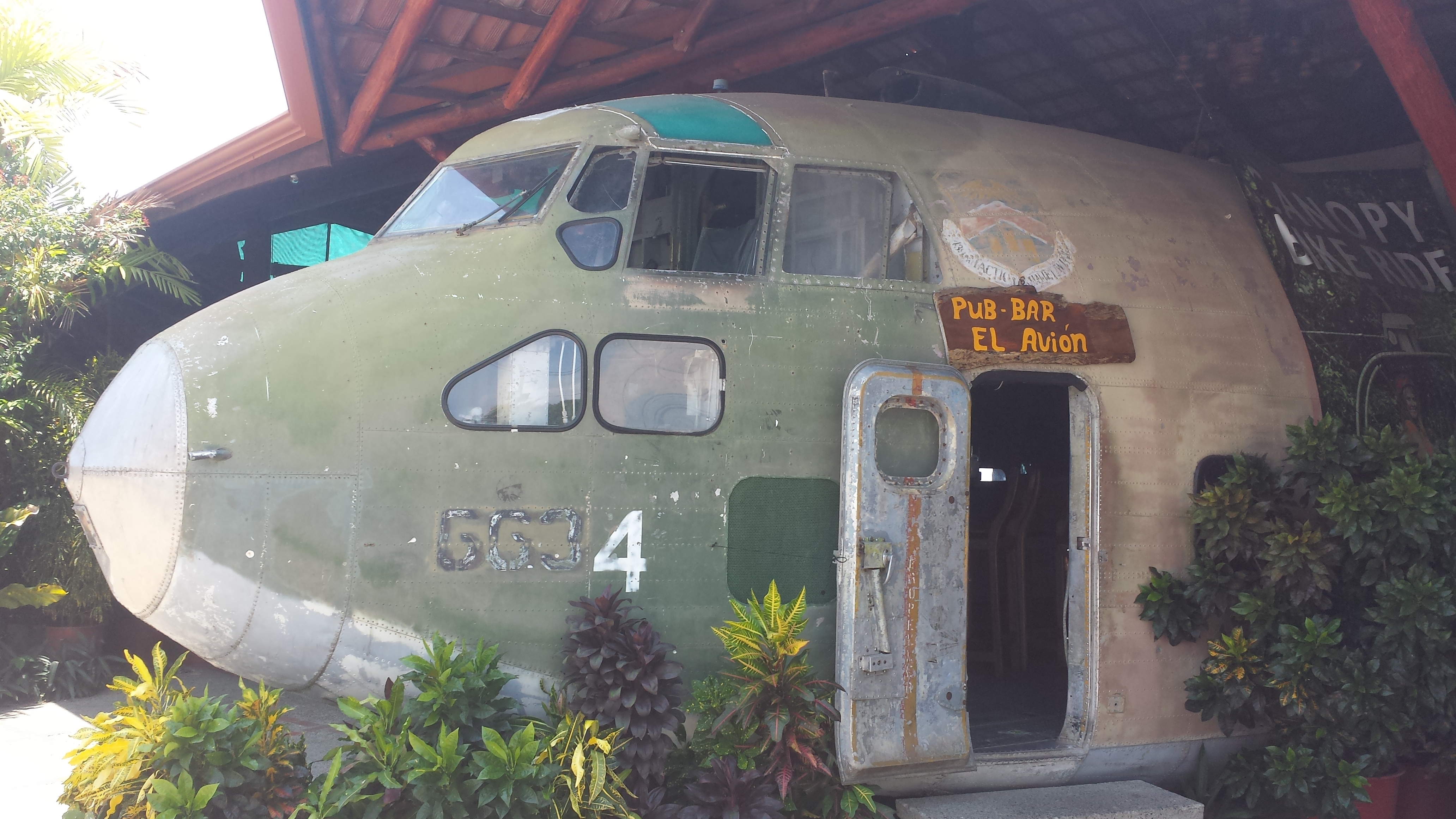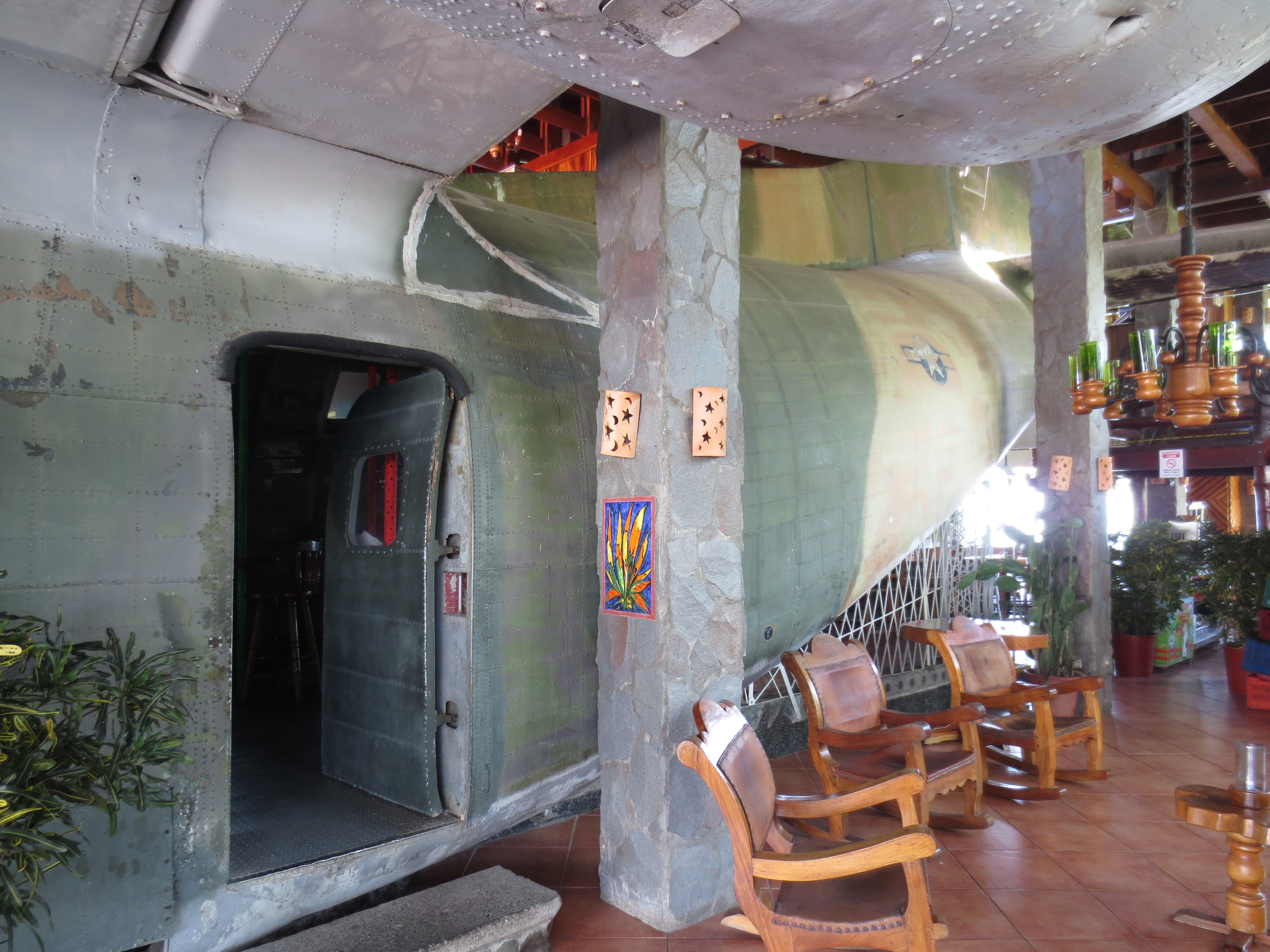 Turns out this plane, and another one just like it, was acquired by the CIA to fly goodies into Nicaragua. Unfortunately for pilot Eugene Hasenfus (yep, real name) his C123 was shot down on October 5, 1986, while making a run for a guy named Ollie. Well, once good ole Eugene was marched out of the jungle by the Sandinistas, Ollie needed to find another way to do business. So……left abandoned in San Jose, this C123 was bought in 2000, disassembled and shipped to Manuel Antonio where today it serves as a bar and restaurant. Decent food, too.