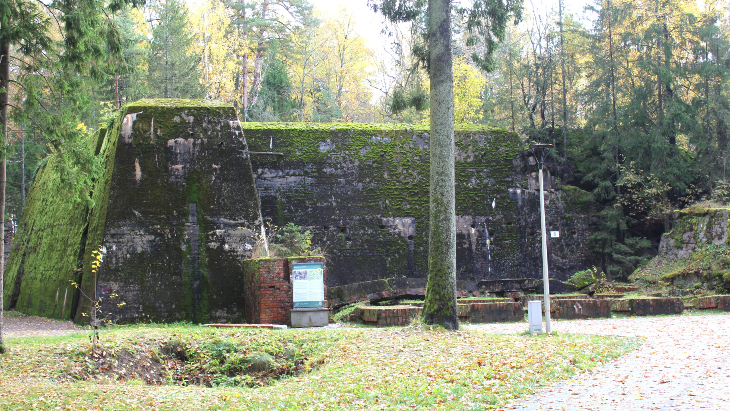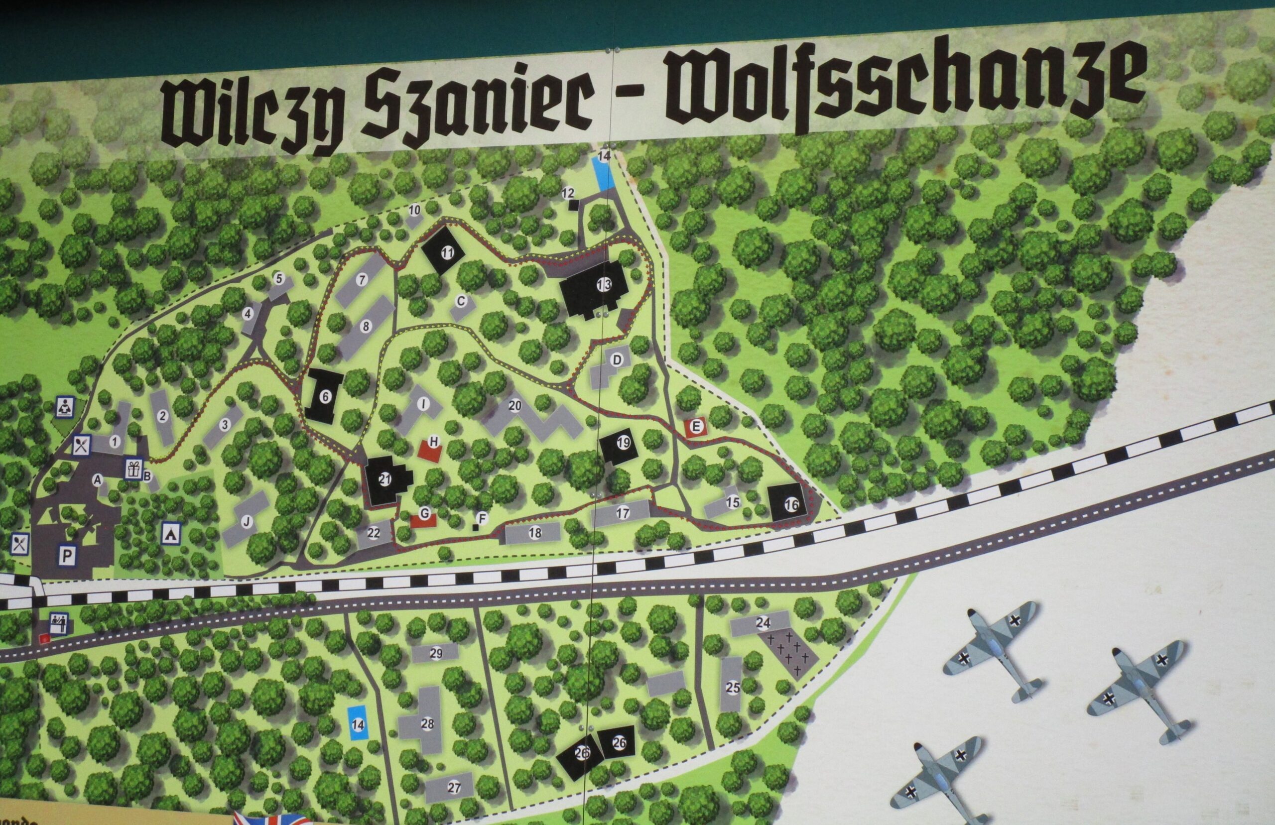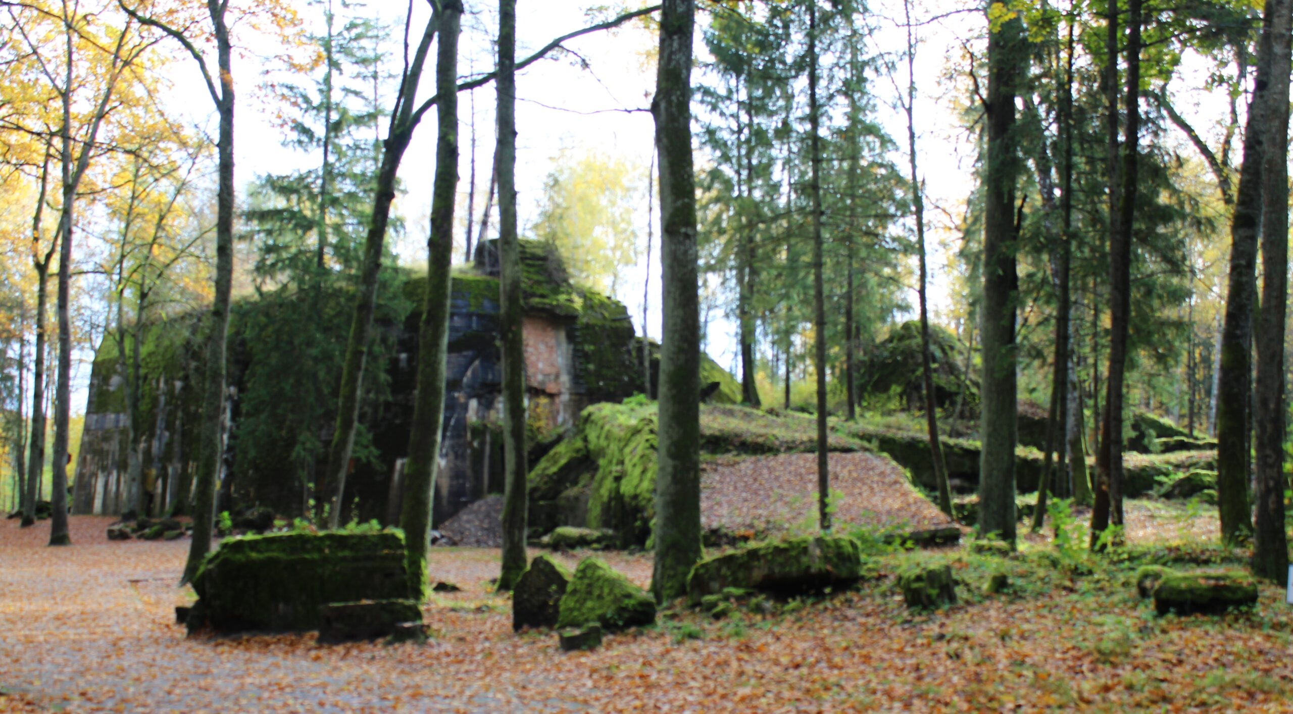 Beautiful day in Poland, clear, sunny, a little cool but no rain, perfect day to wander around the woods looking at shattered concrete structures. The drive to Wolf’s Lair is about 20 minutes from our hotel. Grabbed the usual provided breakfast (yes, again!) of powdered eggs, partially cooked bacon, yogurt, toast, and bad coffee to hold us through this morning’s touring. Makes you hungry, huh!