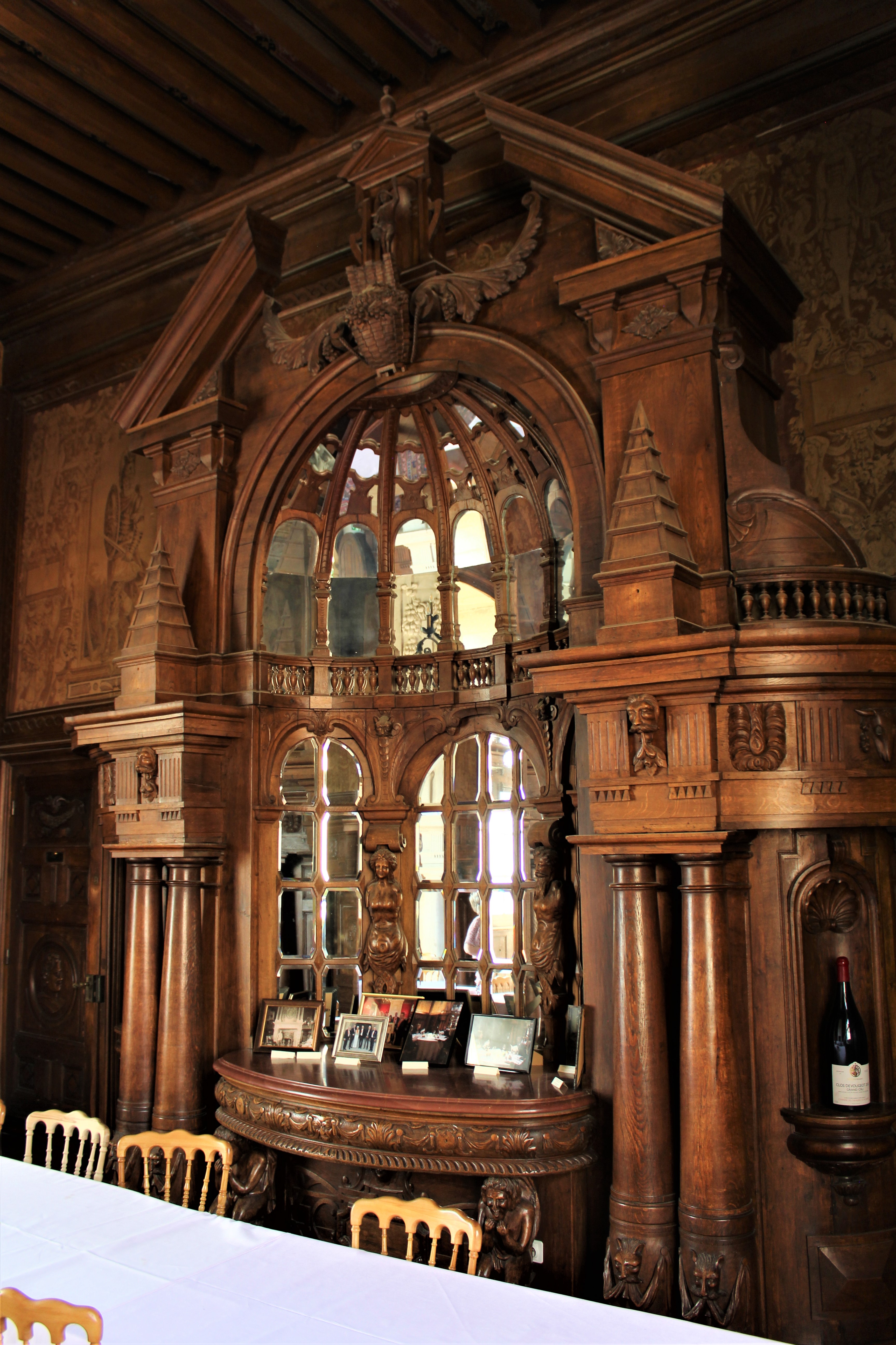 We did a brief self-guided tour of the chateau. Some of the ancient woodworking is just amazing. The dormitory and reception rooms have beams carved from a single tree that stretch 30+ feet! There were also some interesting bracing techniques used to support the roof (see below). But you can’t fault their workmanship, it’s still standing today after 925 years!